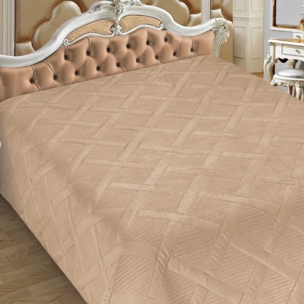 Покрывало на кровать 200х230 евро из фланели 140 г/м2 бежевое Ромбы Marianna