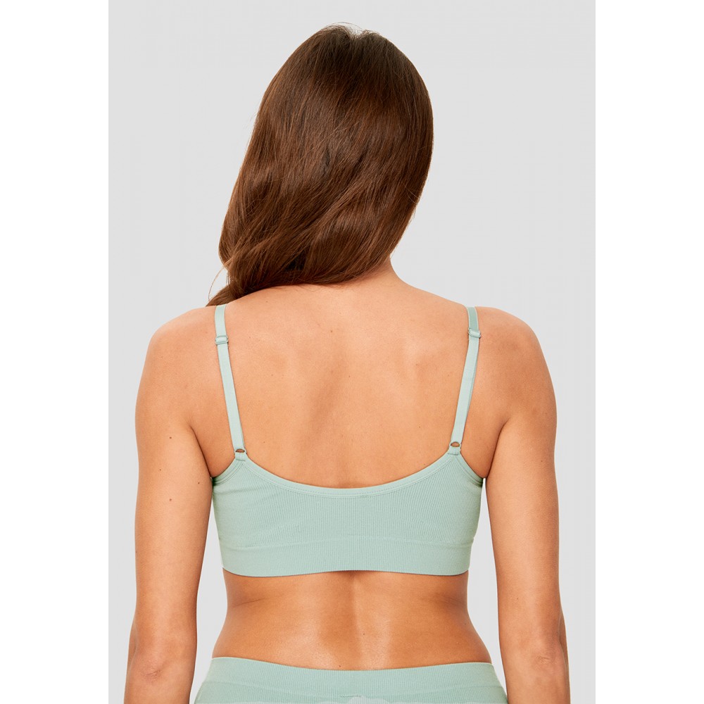 Идеальное базовое белье на каждый день и для занятий спортом. Бюстгальтер выполнен из трендового материала в рубчик (резинка риб) в актуальном зеленом оттенке. Мягкая чашка без косточек дополнена съемными формованными вкладышами. Это позволяет значительно продлить срок службы белья при стирке. Эластичная подкладка невероятно приятна телу и сохраняет комфорт. Мягкие эластичные края не оставляют следов на коже. Тонкие регулируемые бретели, лента под грудью и эластичность материала обеспечивают оптимальную посадку и поддержку. Отсутствие застежки — еще один плюс в копилку комфорта. Осторожно, белье настолько комфортное, что вы можете забыть, что надели его!