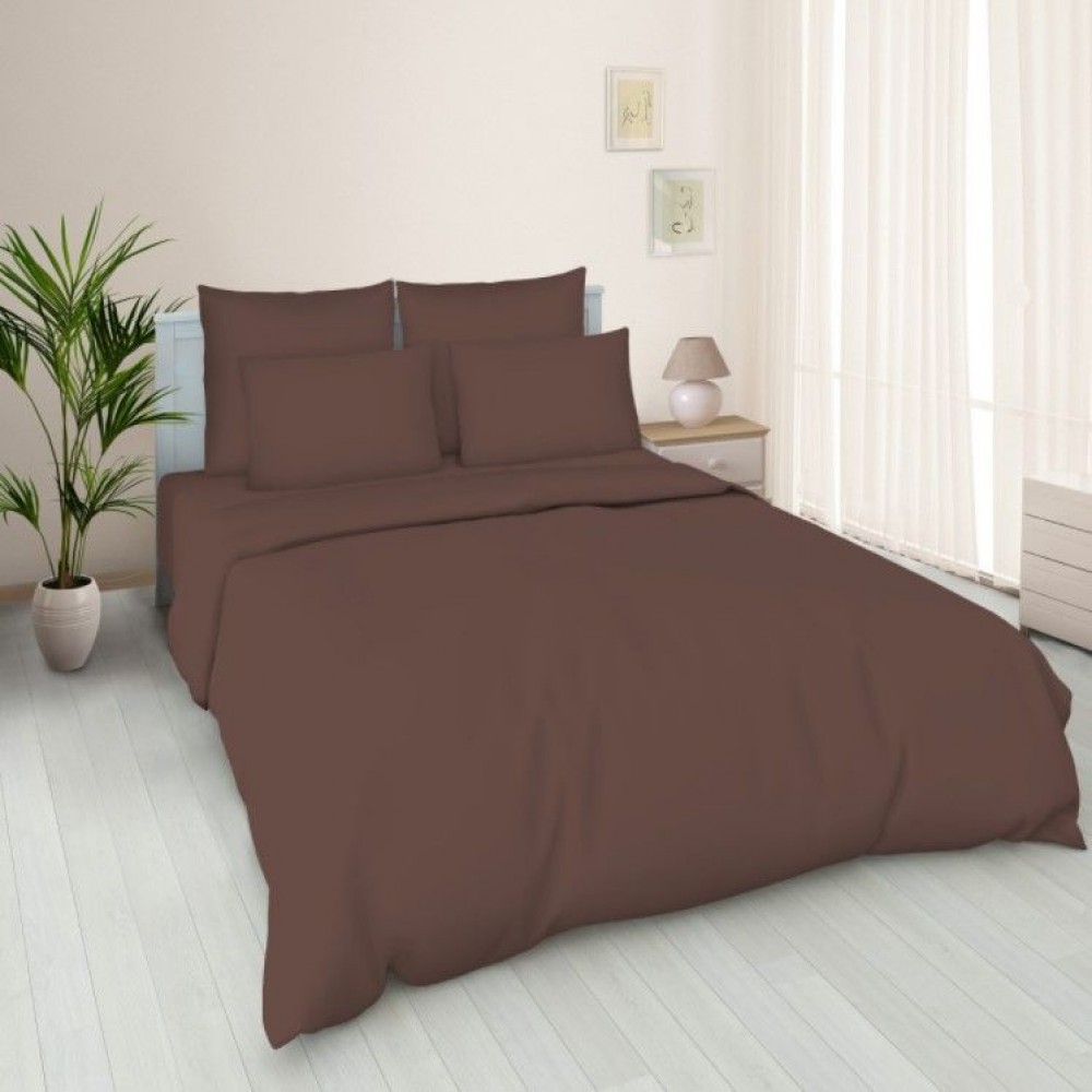Простыня на резинке 90х200 1,5 спальная из поплина коричневая однотонная Василиса