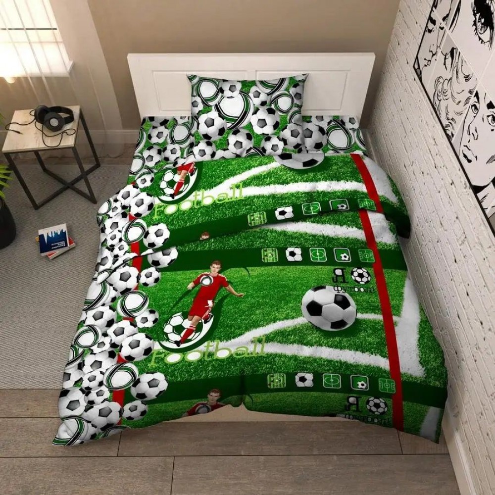 Комплект постельного белья детский 1,5 спальный из поплина с наволочкой 70х70 Спорт