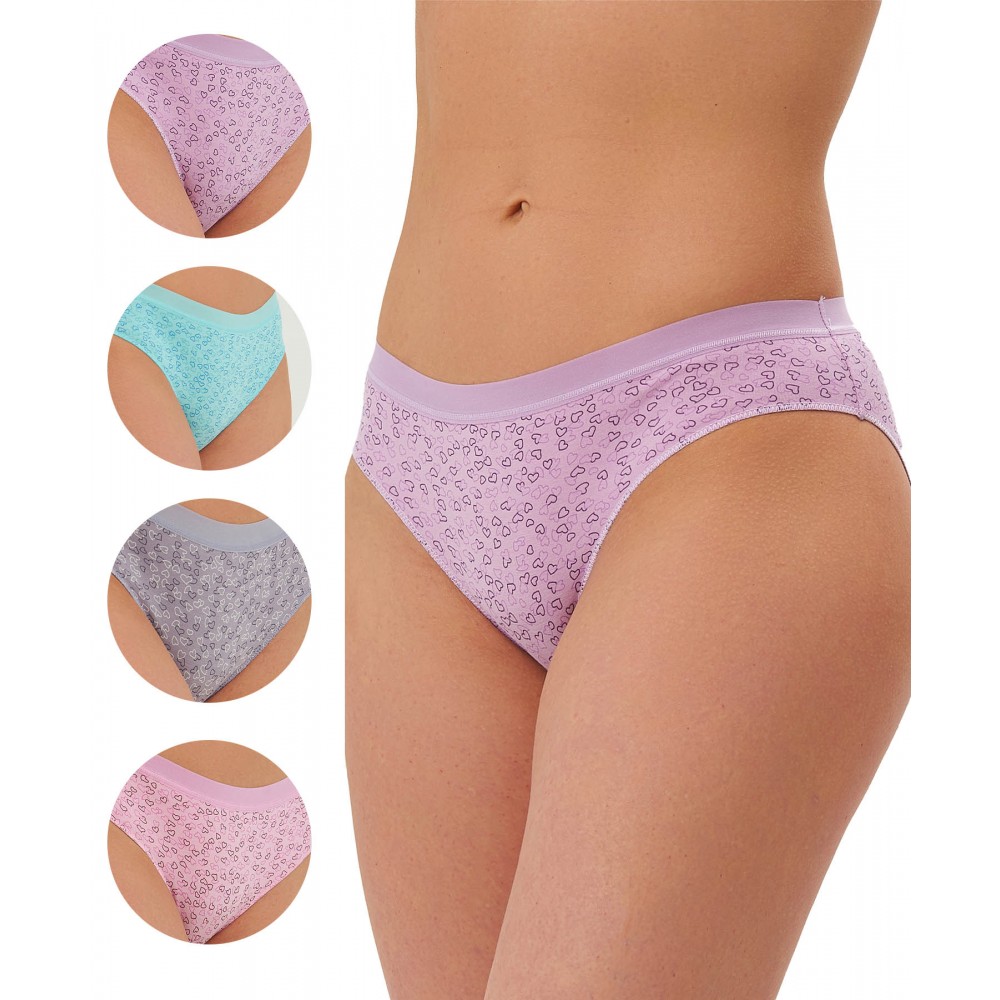 Трусы-слипы для женщины, из эластичного х/б трикотажа с мелким рисунком. В поясе и в проймах на тонкой резинке с фистончатым краем.