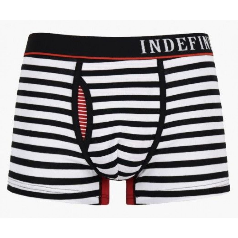 Мужские трусы от торговой марки Индефини. Трусы-боксеры из хлопка, белого цвета, с принтом в полоску, со вставками красного цвета, на мягкой резинке.