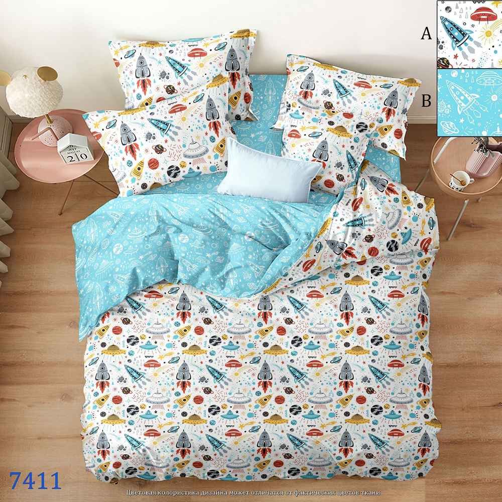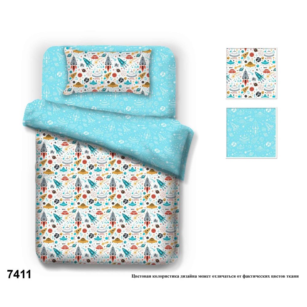 Комплект постельного белья детский 1,5 спальный из поплина с наволочкой 50х70 Космос ОТК Производство