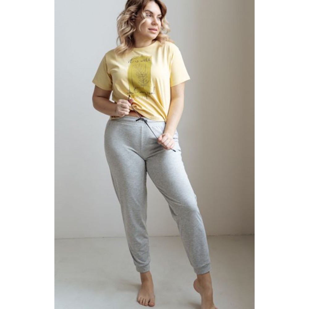 Брюки женские трикотажные серые однотонные