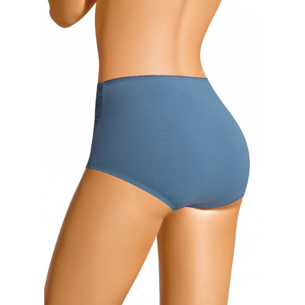 Трусы макси утяжка женские из плотного эластичного хлопкового полотна. По переду отделка кружевом и двойной слой основного полотна. Обработка краев по талии - ажурной резинкой с фестоном, по ноге - окантовкой. Состав: 92% хлопок, 8% эластан Кружево: 90% нейлон, 10% эластан