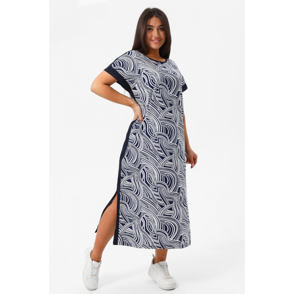 Платье женское из кулирки с рукавом 1/2 Темно-синий