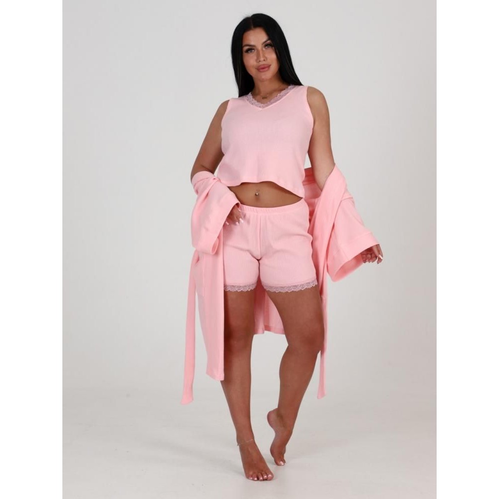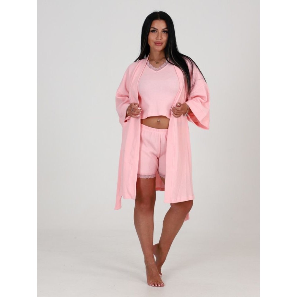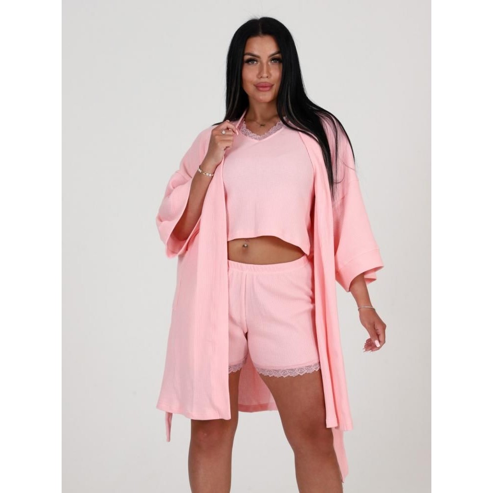 Гарнитур женский из вафли с запахом пижама и халат розовый однотонный