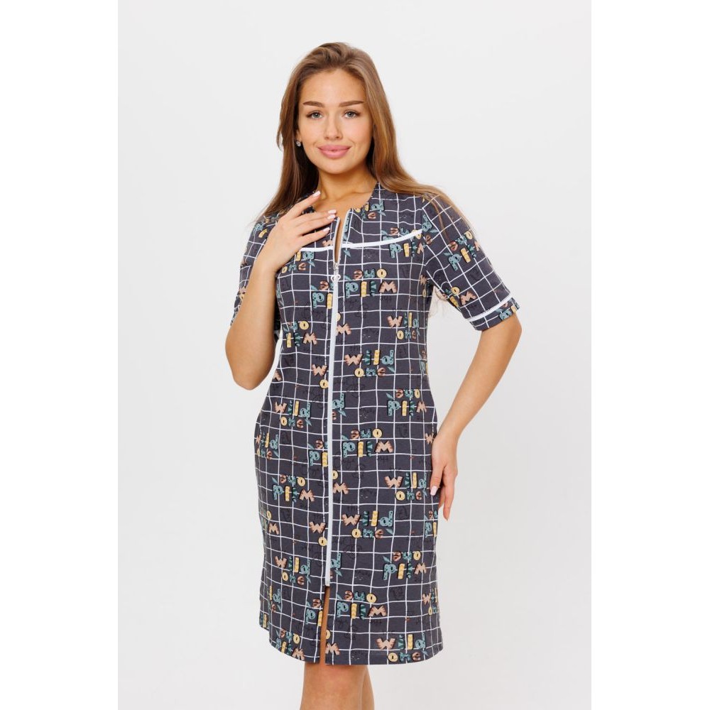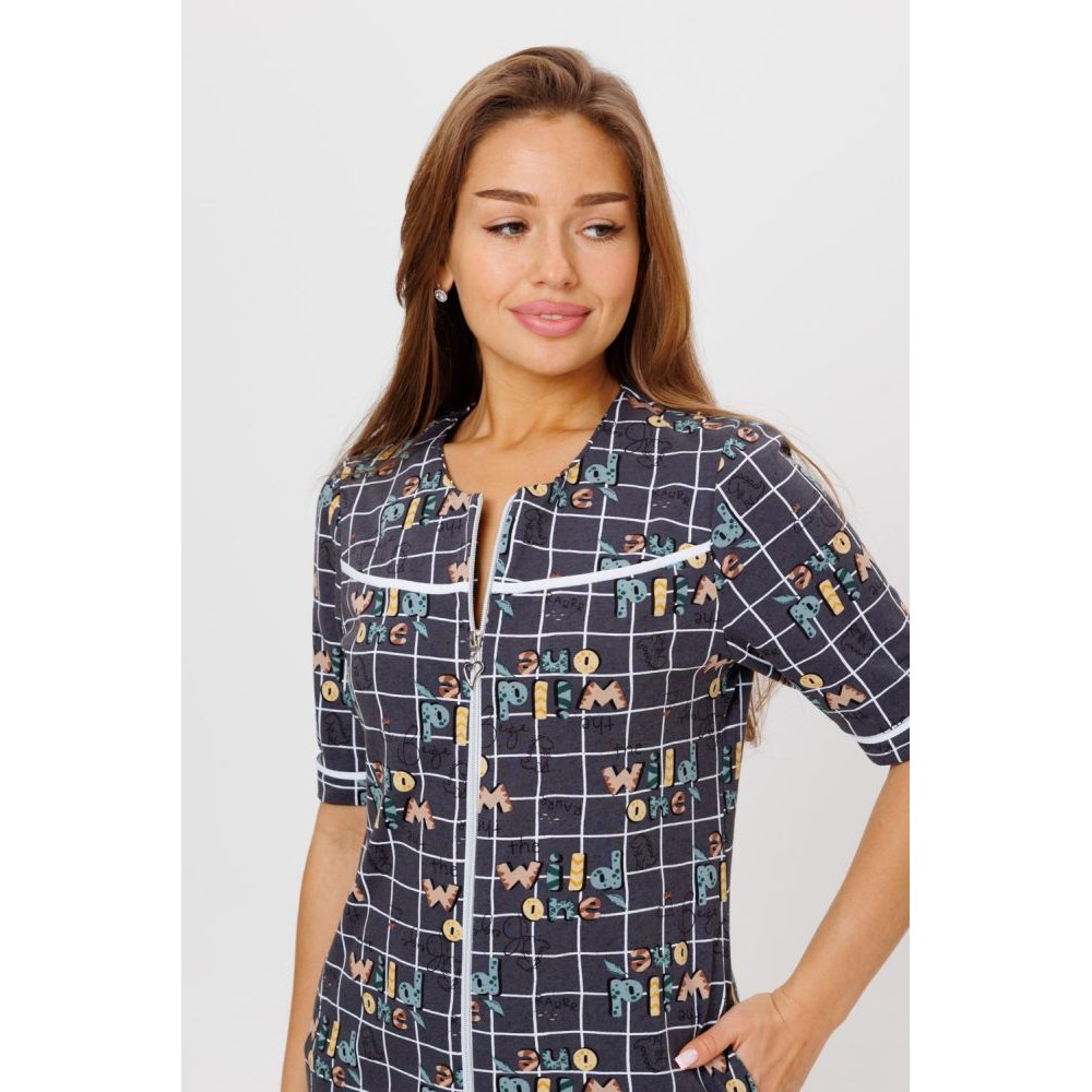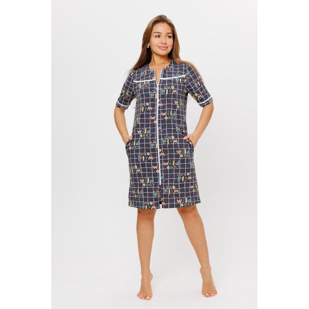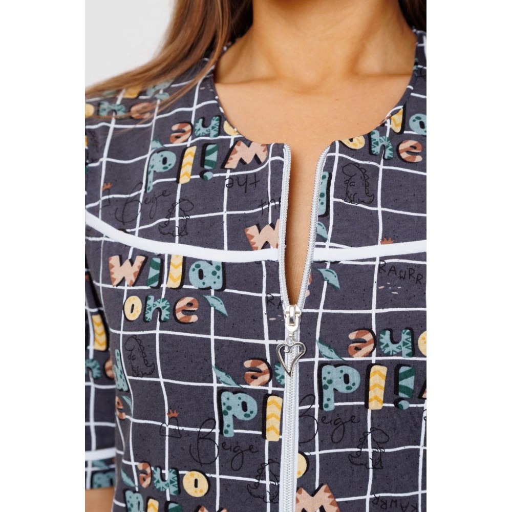 Халат женский из кулирки на молнии с рукавом 1/2 серый Kuzina