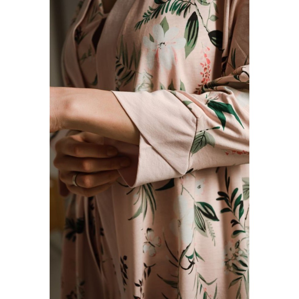 Халат женский трикотажный на пуговицах с длинным рукавом розовый