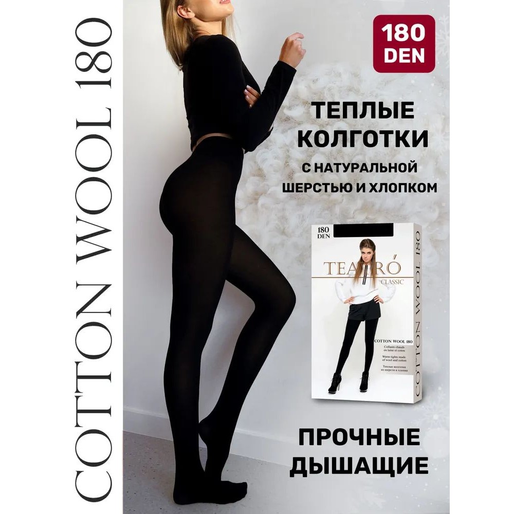 Теплые колготки из натуральной шерсти и хлопка плотностью 180 den создают ощущение уюта даже в самых суровых условиях.