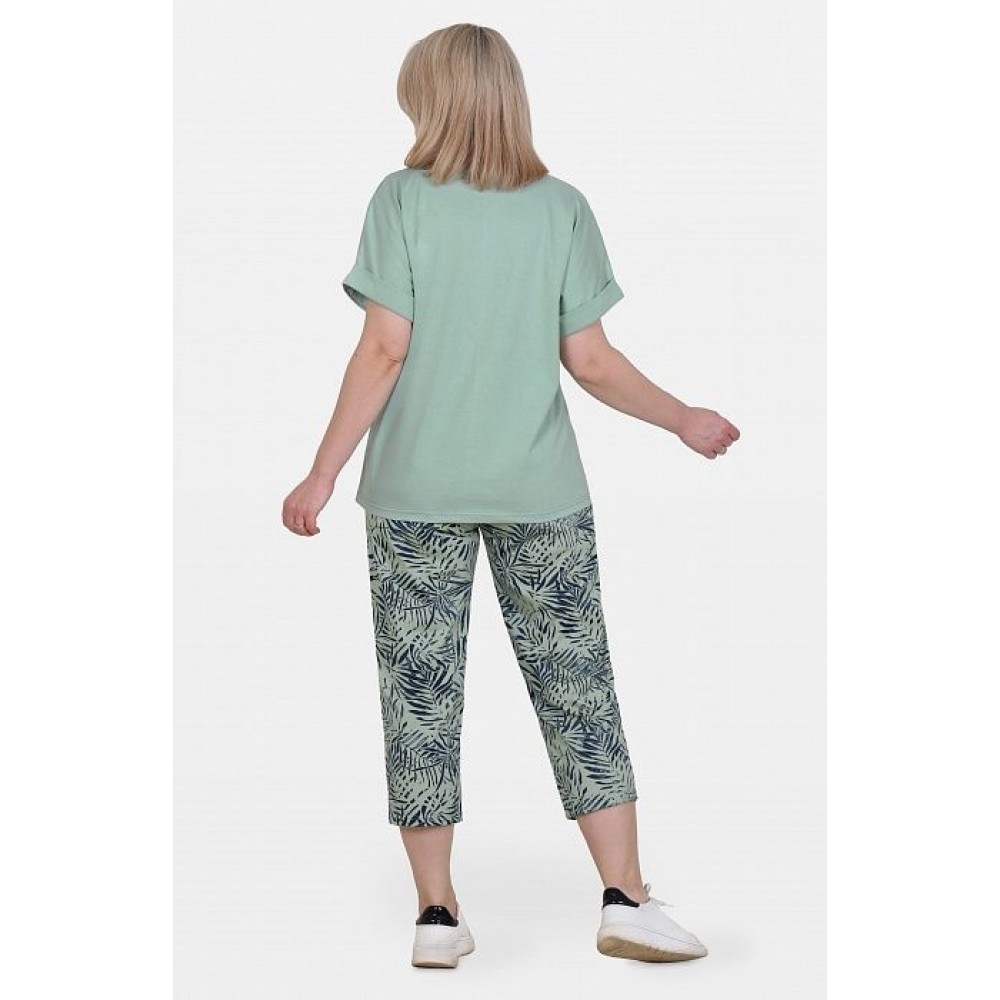 Костюм женский из кулирки футболка с бриджами зеленый
