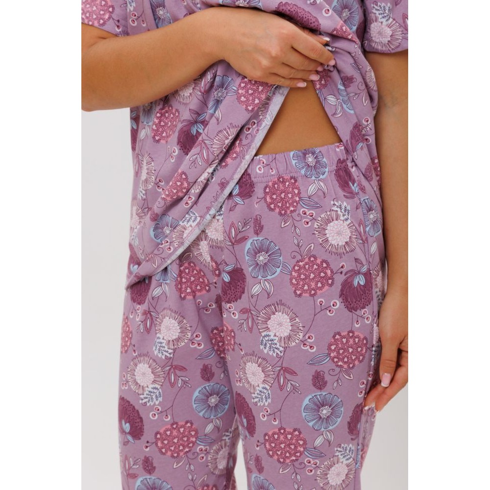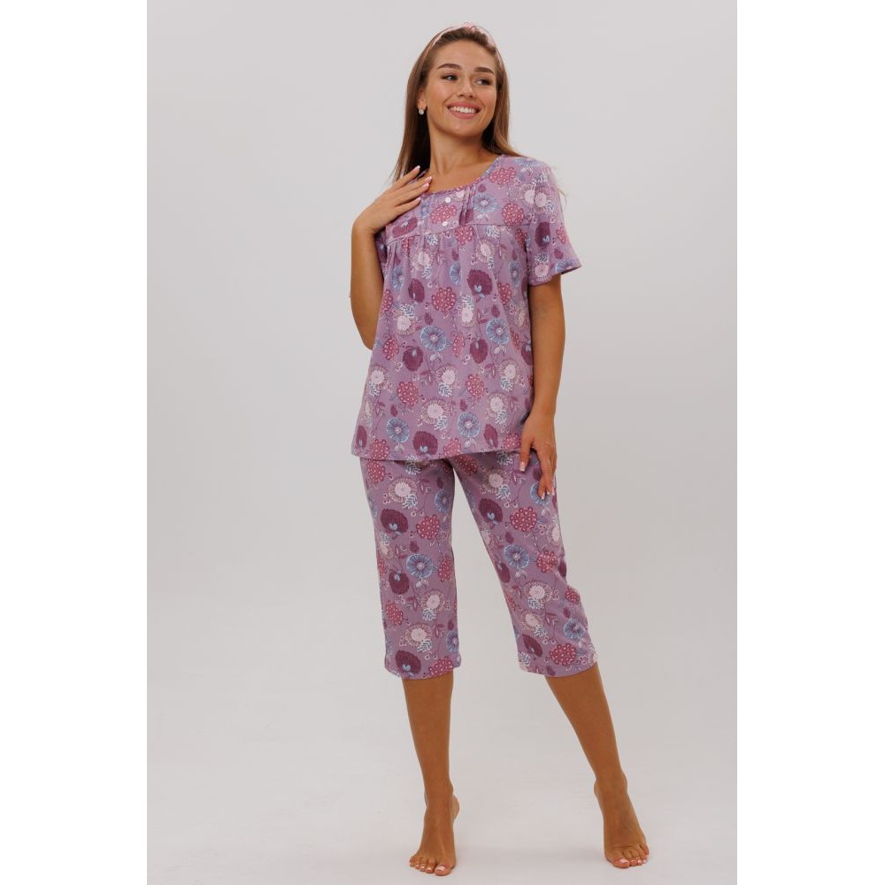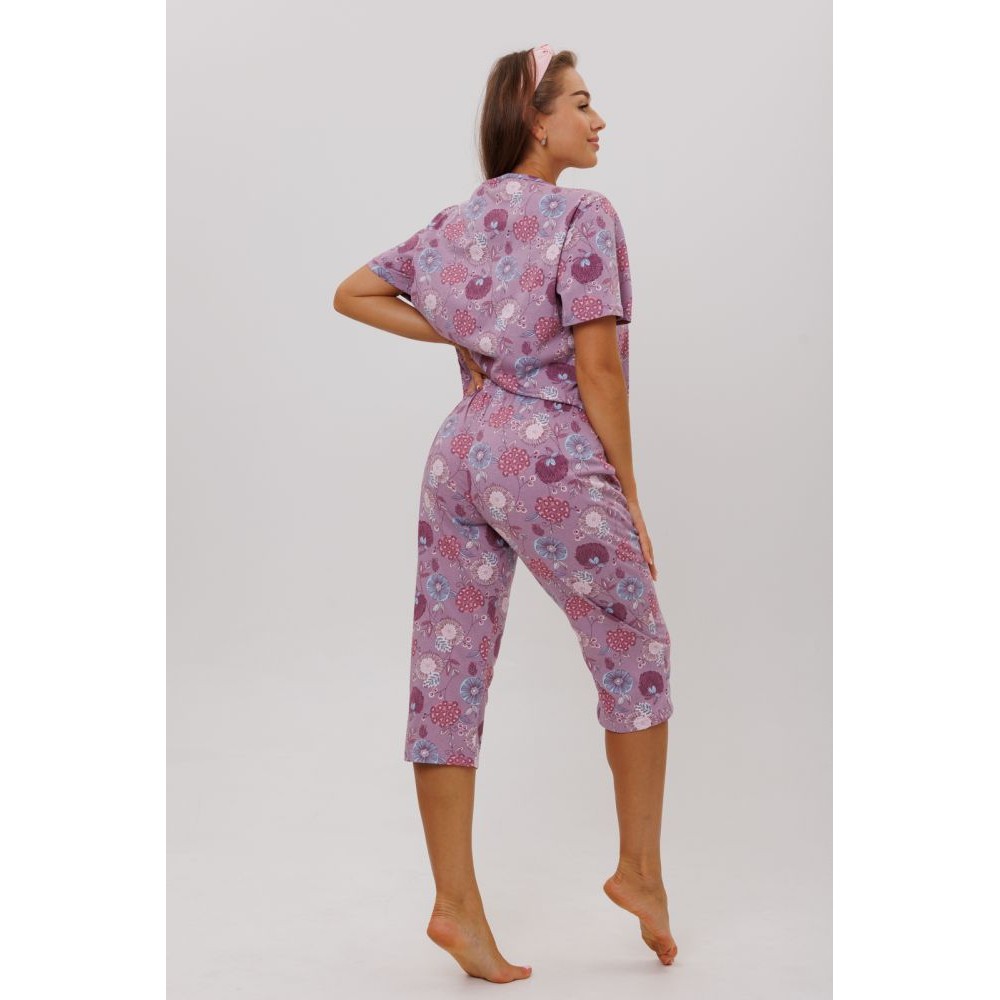 Пижама женская из кулирки футболка с бриджами Сиреневый Цветы