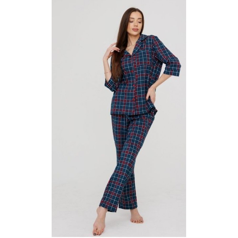 Пижама женская из кулирки на пуговицах рубашка с брюками