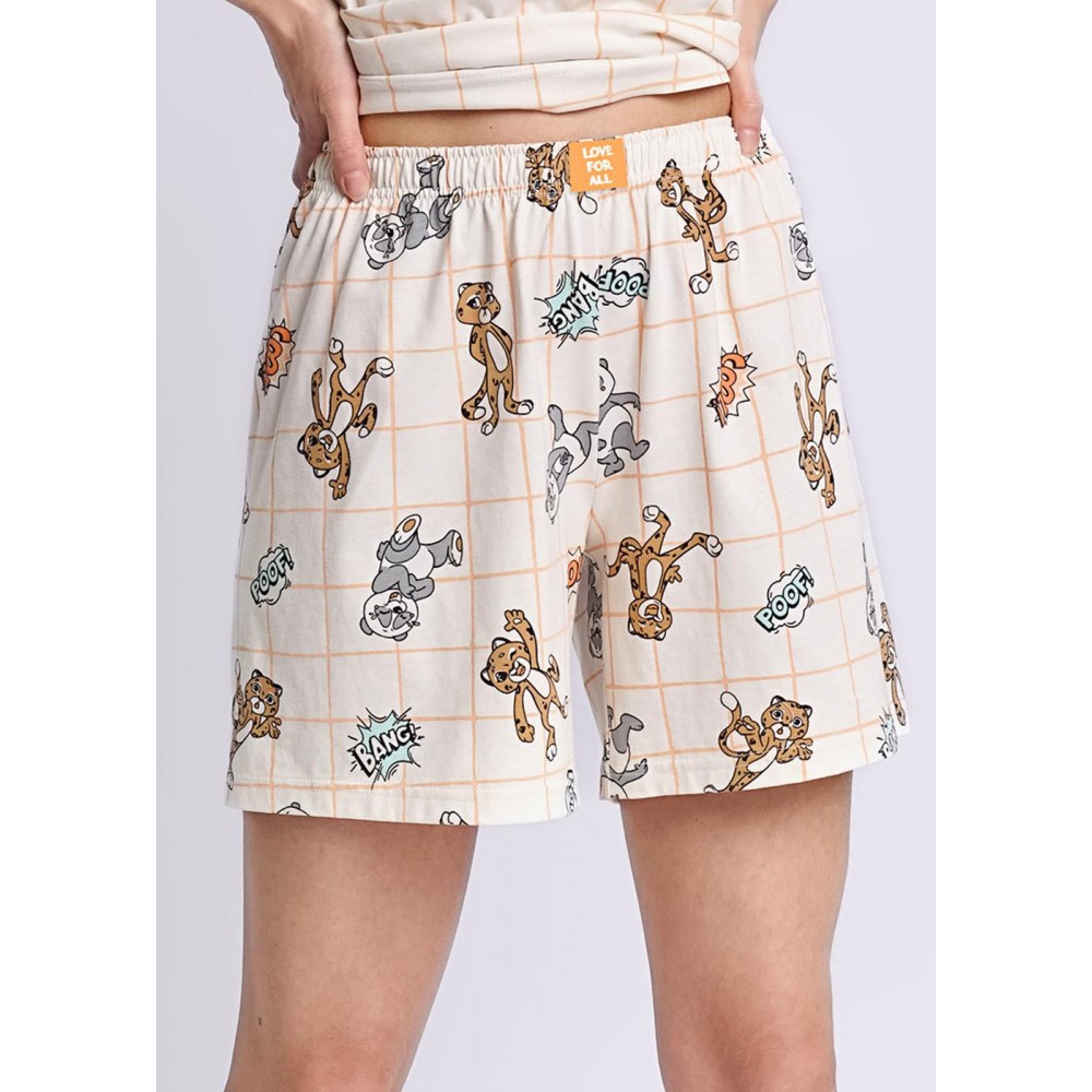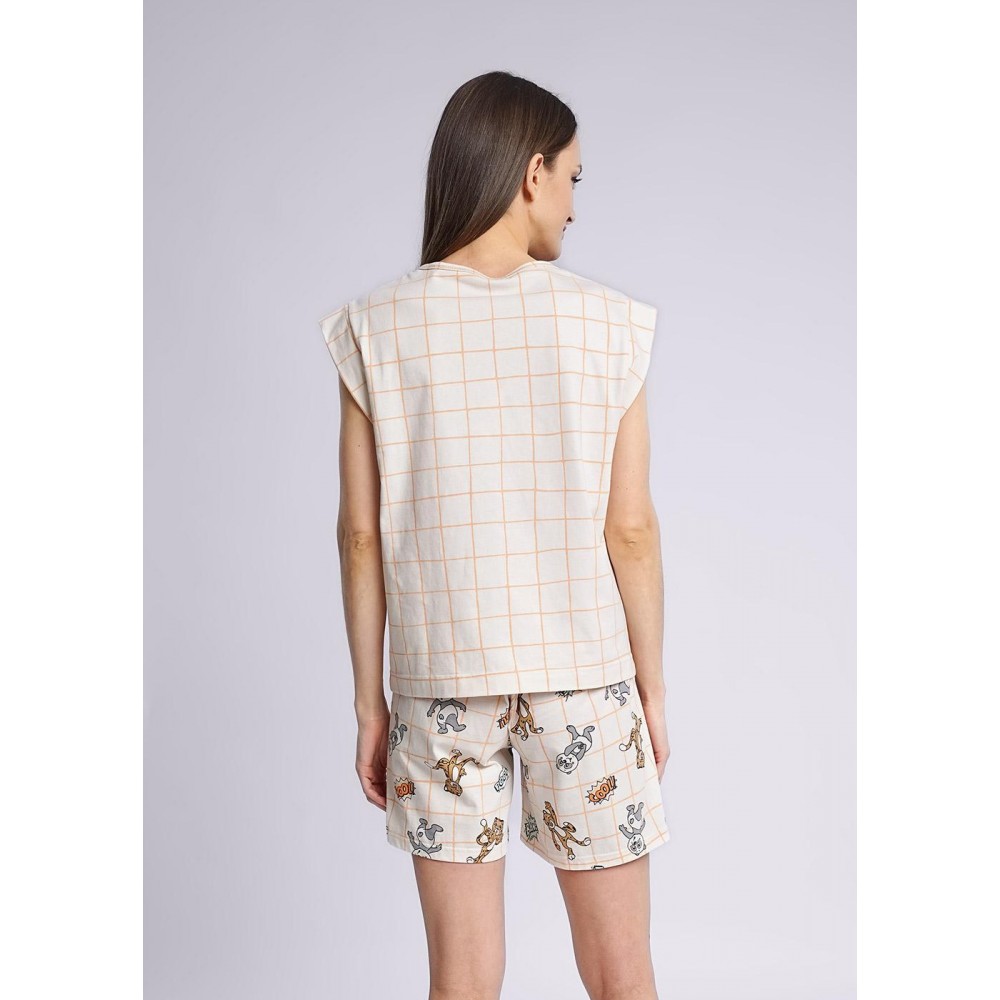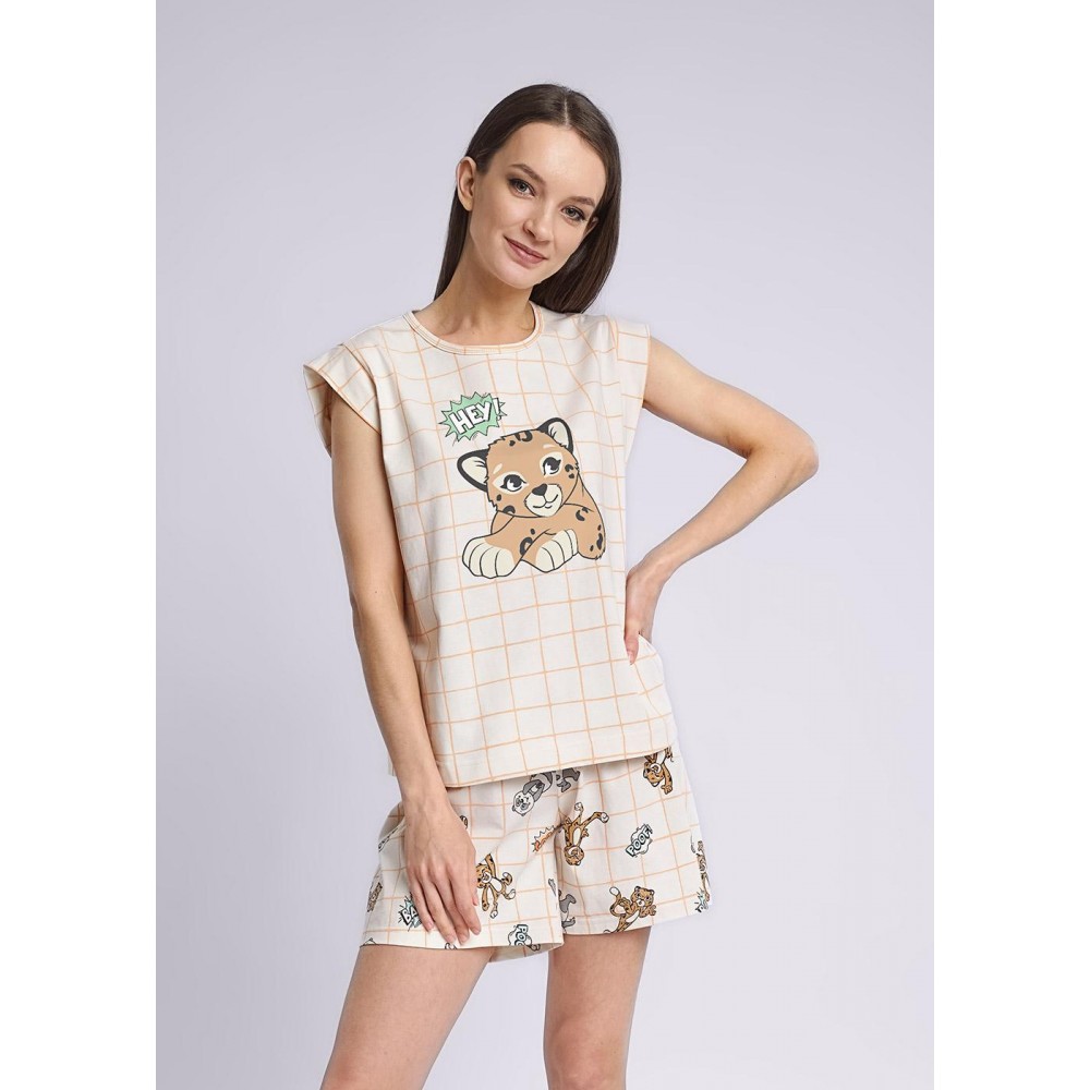 Комплект женский из кулирки футболка с шортами бежевый Животные
