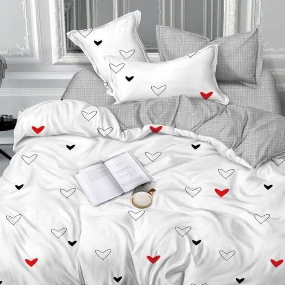 Комплект постельного белья 1,5 спальный из сатина с наволочками 70х70 2 шт Сердечки Luxor