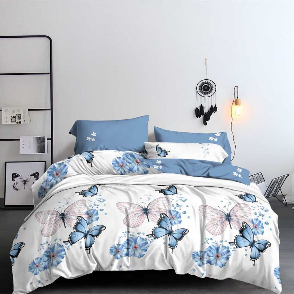 Комплект постельного белья 1,5 спальный из поплина с наволочками 70х70 2 шт Бабочки Luxor