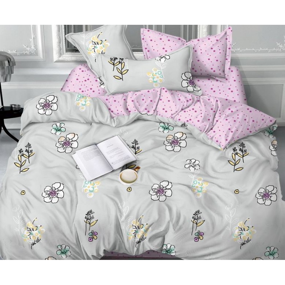 Комплект постельного белья 1,5 спальный из сатина с наволочками 70х70 2 шт Цветы Luxor