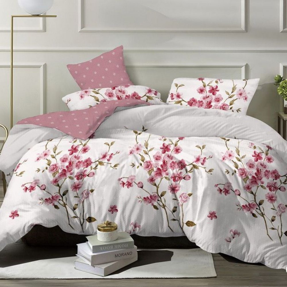 Комплект постельного белья двуспальный из поплина с наволочками 70х70 2 шт Цветы Kuzina