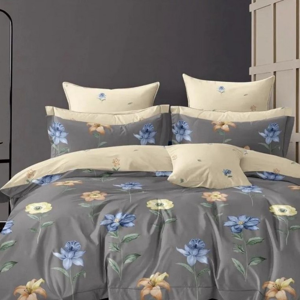 Комплект постельного белья евро из сатина с наволочками 70х70 2 шт Цветы Kuzina