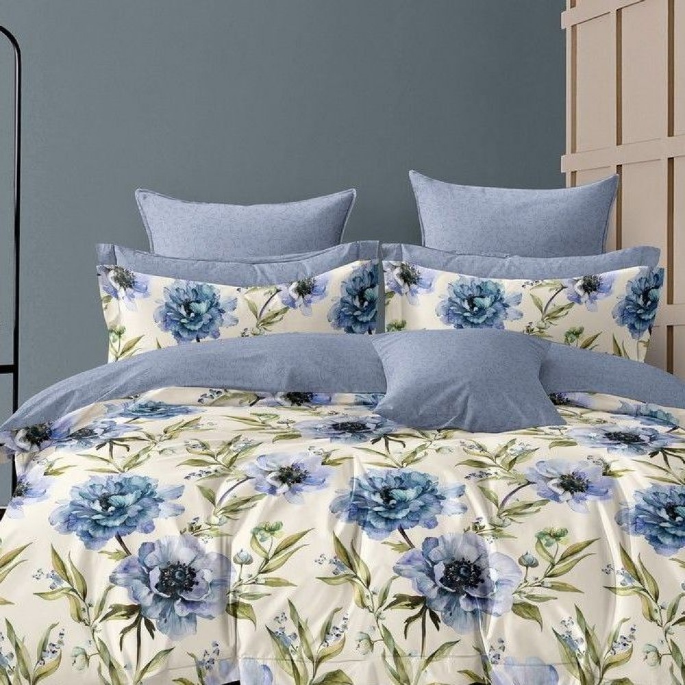 Комплект постельного белья евро из сатина с наволочками 70х70 2 шт Цветы Kuzina