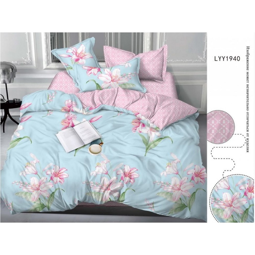 Комплект постельного белья евро из сатина с наволочками 70х70 2 шт Цветы Luxor