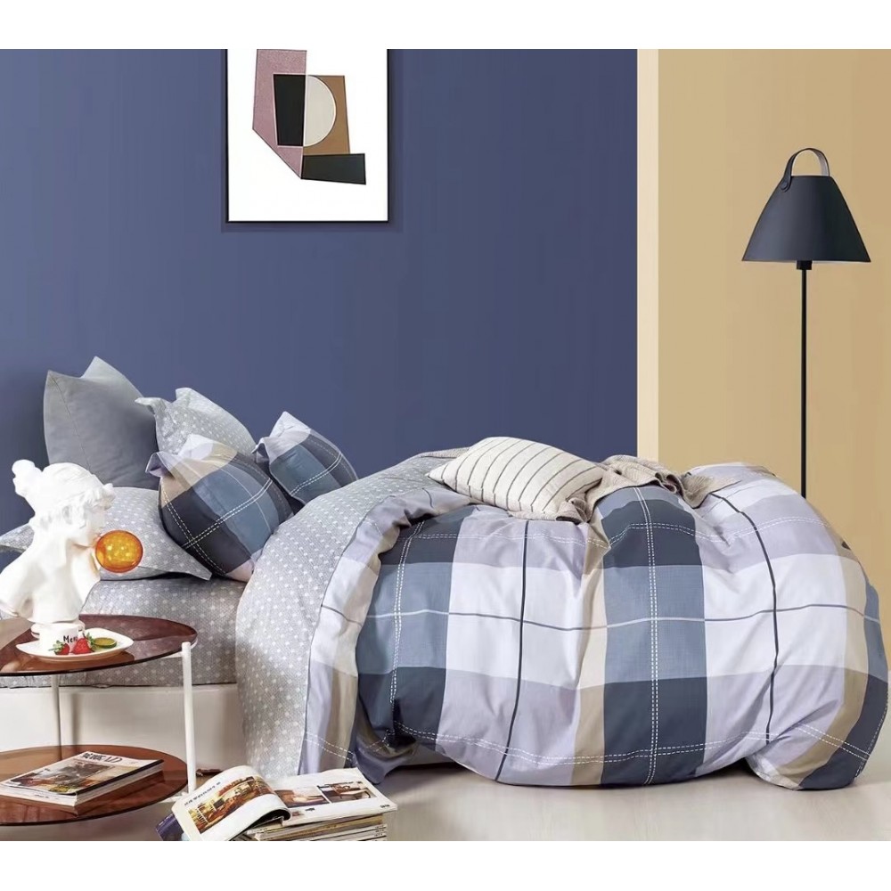 Комплект постельного белья евро из сатина с наволочками 50х70 2 шт и с наволочками 70х70 2 шт Клетка Retrouyt