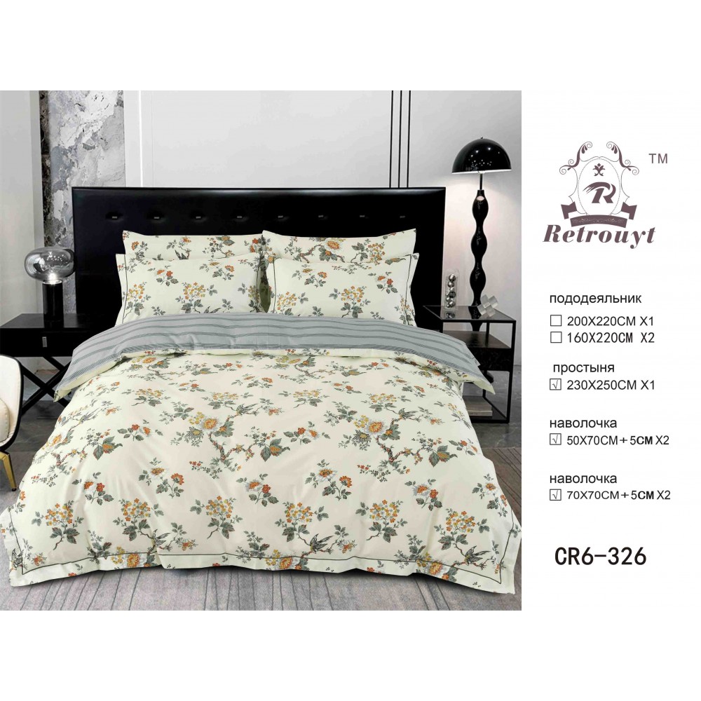 Комплект постельного белья евро из сатина с наволочками 50х70 2 шт и с наволочками 70х70 2 шт Веточки Retrouyt