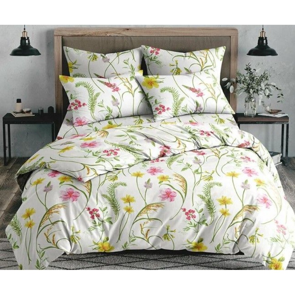 Комплект постельного белья семейный из поплина с наволочками 50х70 2 шт Растения Ночь Нежна