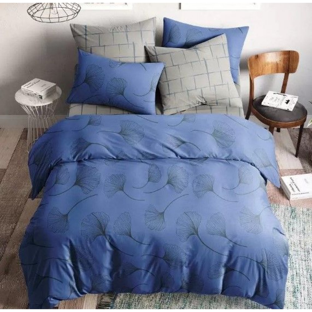 Комплект постельного белья семейный из поплина с наволочками 50х70 2 шт Растения Ночь Нежна