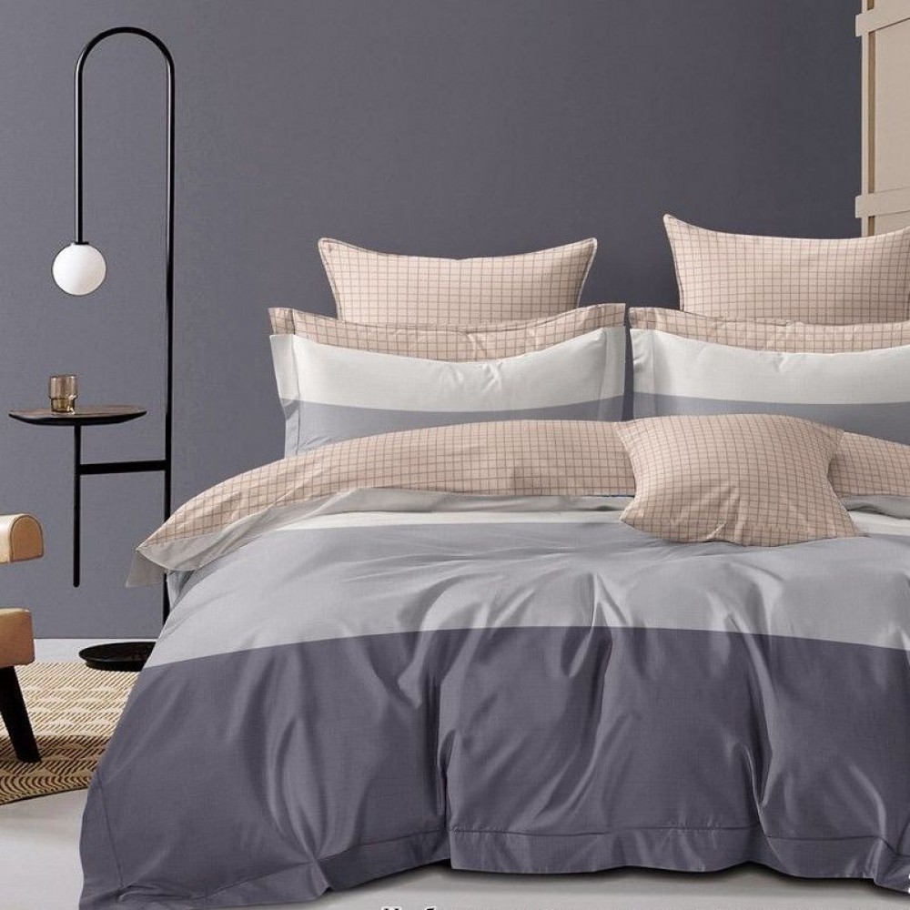 Комплект постельного белья семейный из сатина с наволочками 70х70 2 шт Полоска Kuzina