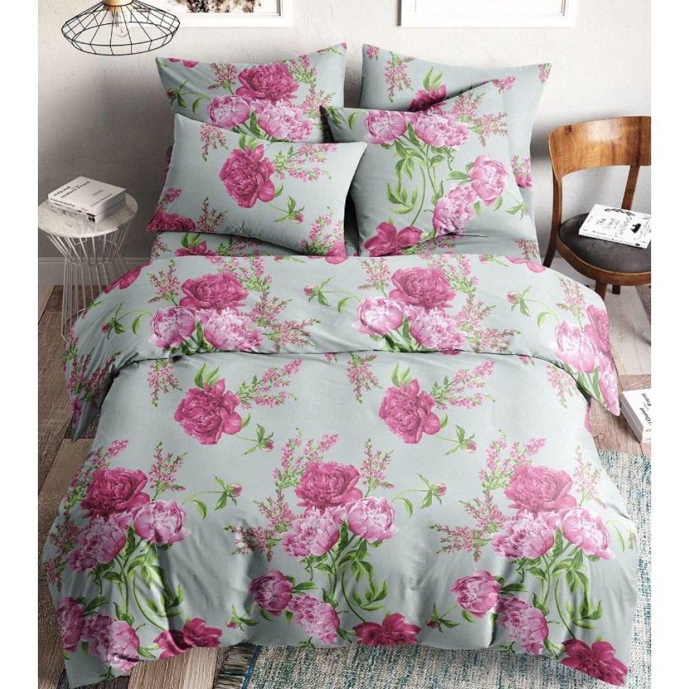 Комплект постельного белья семейный из поплина с наволочками 50х70 2 шт Цветы Веселина