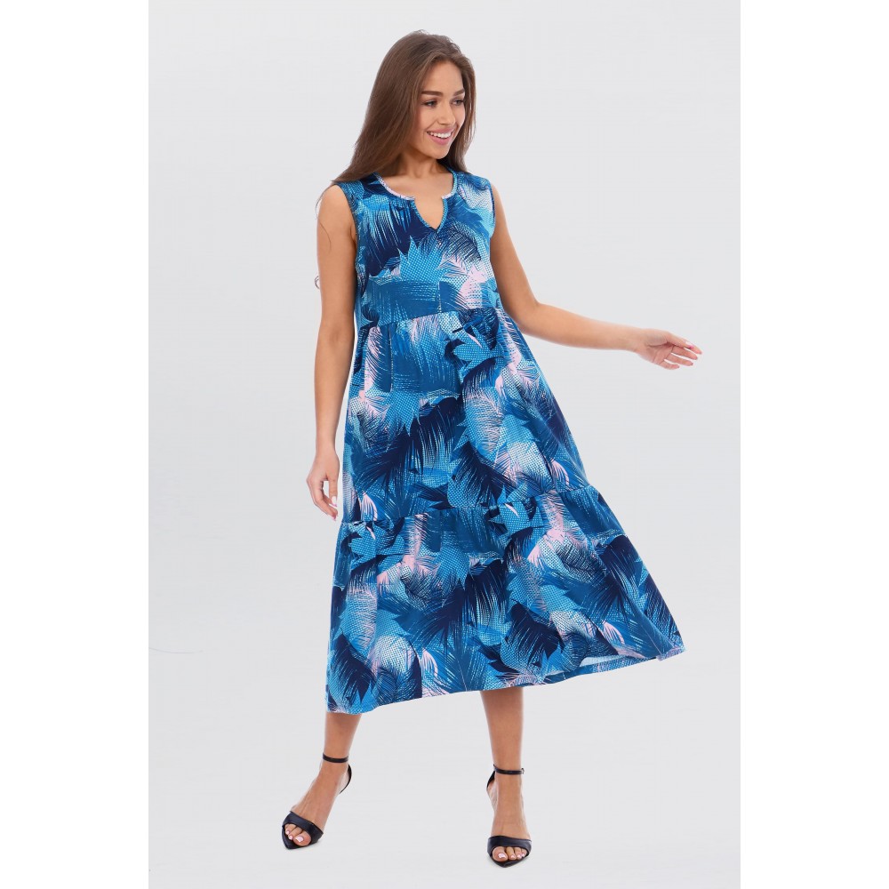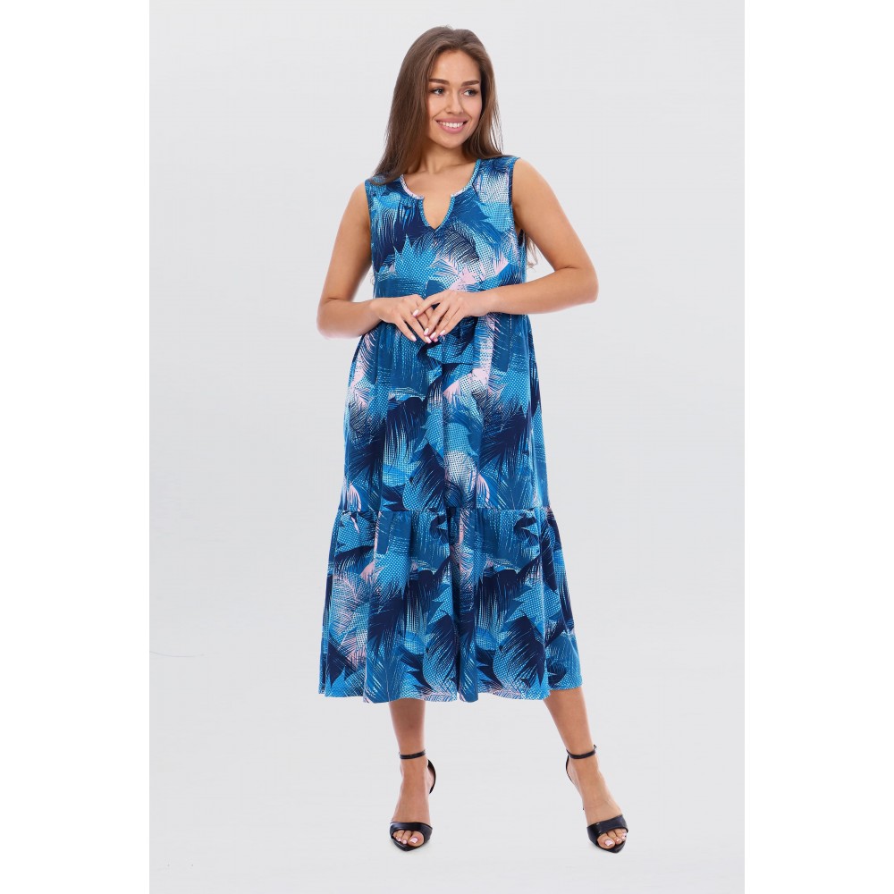 Сарафан из кулирки без рукавов Голубой, Синий Абстракция Kuzina