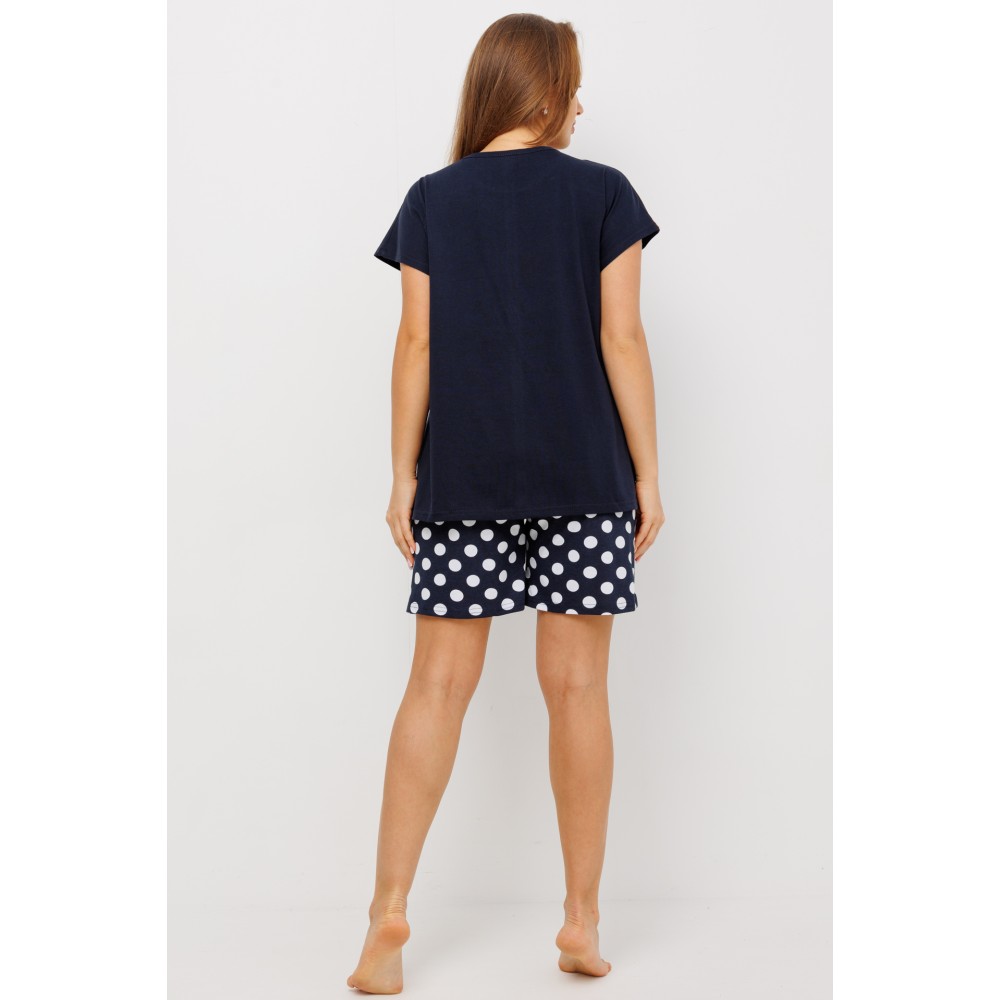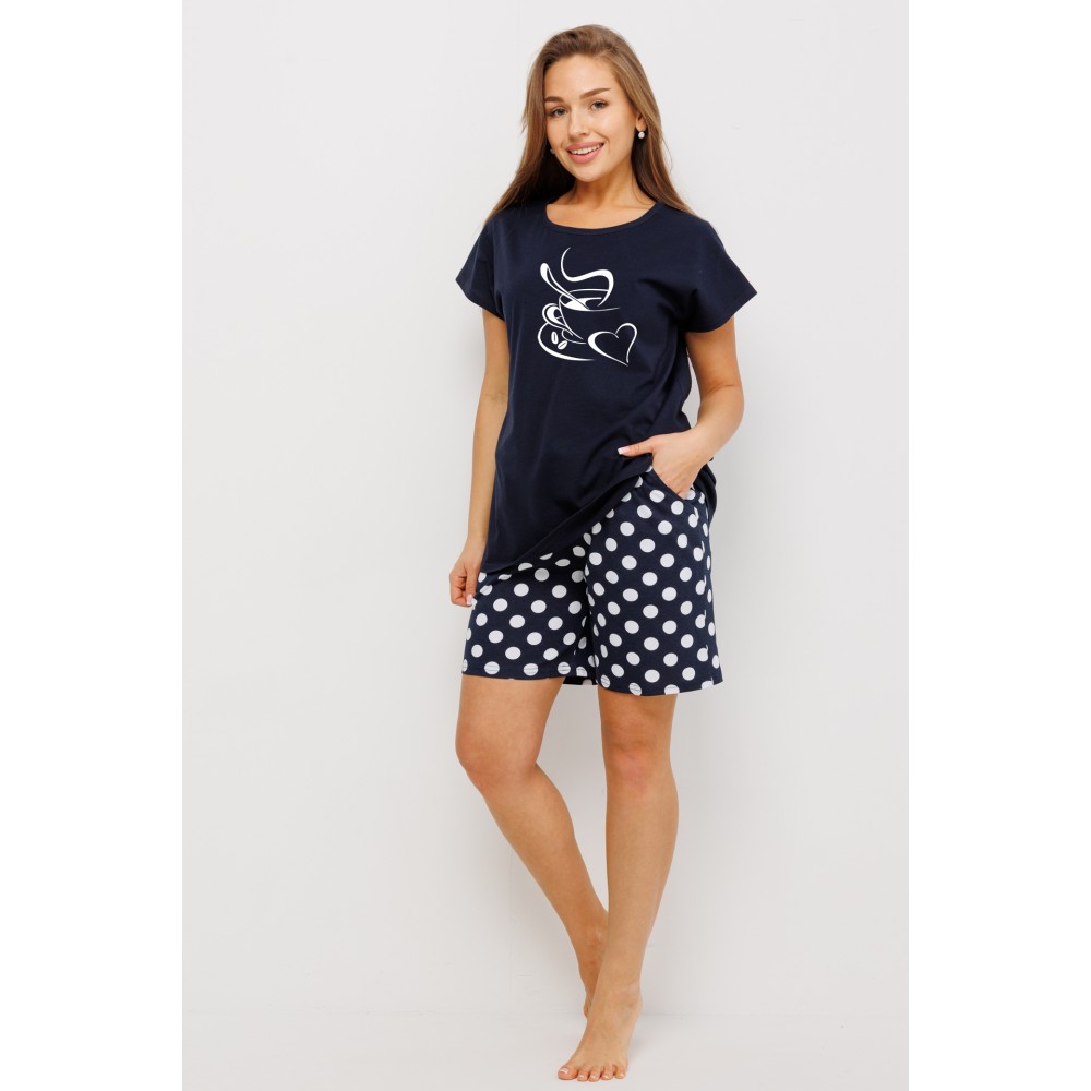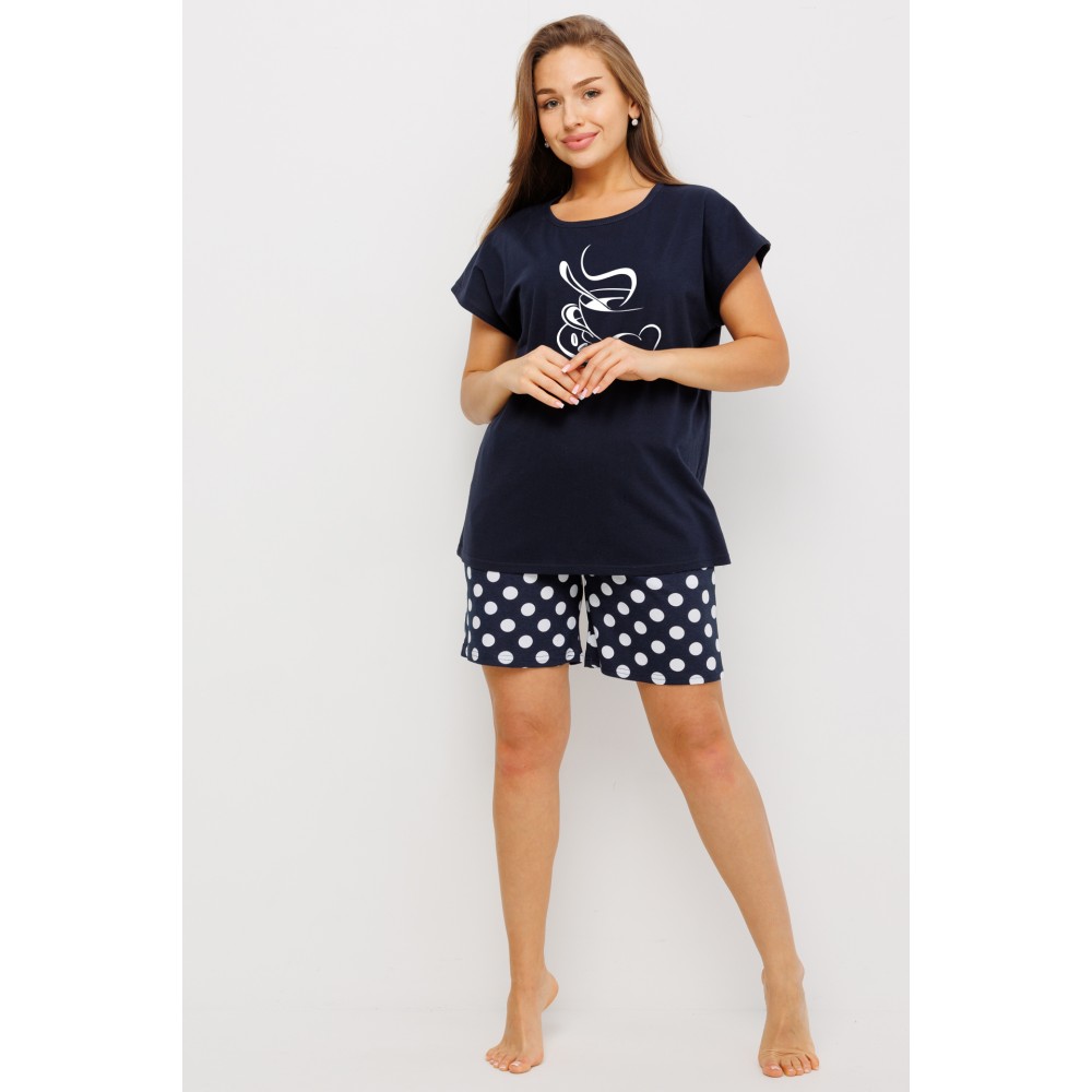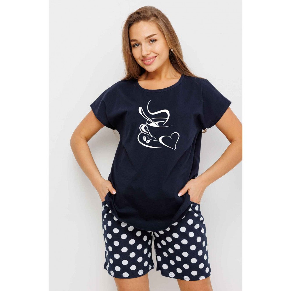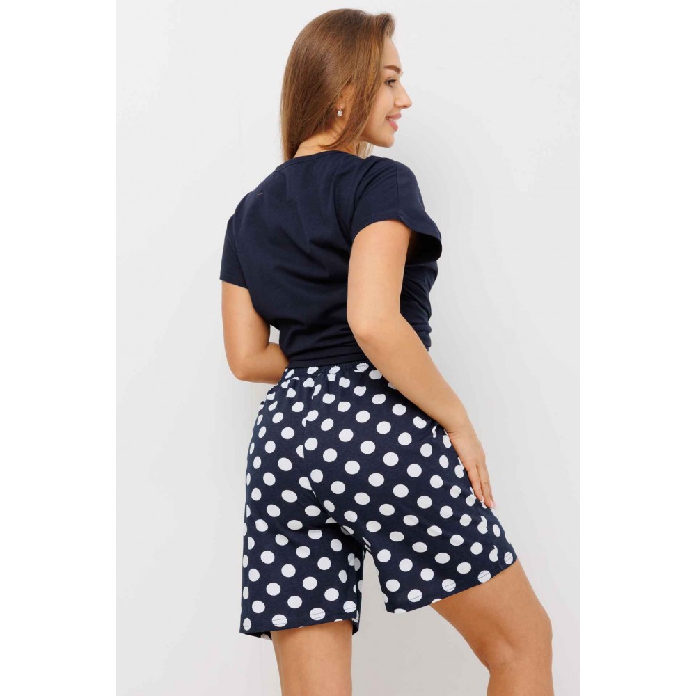 Пижама женская из кулирки футболка с шортами Темно-синий Круги Kuzina