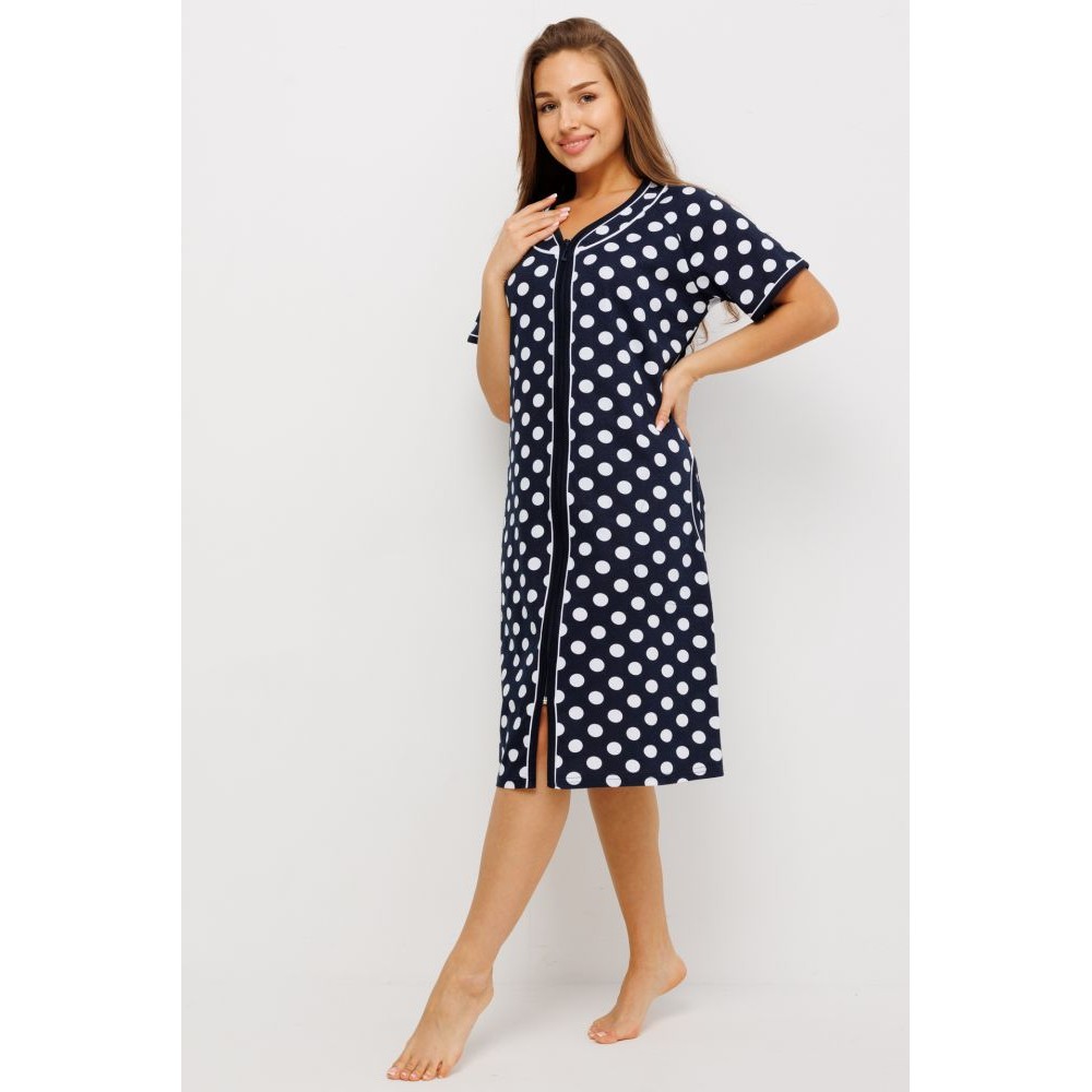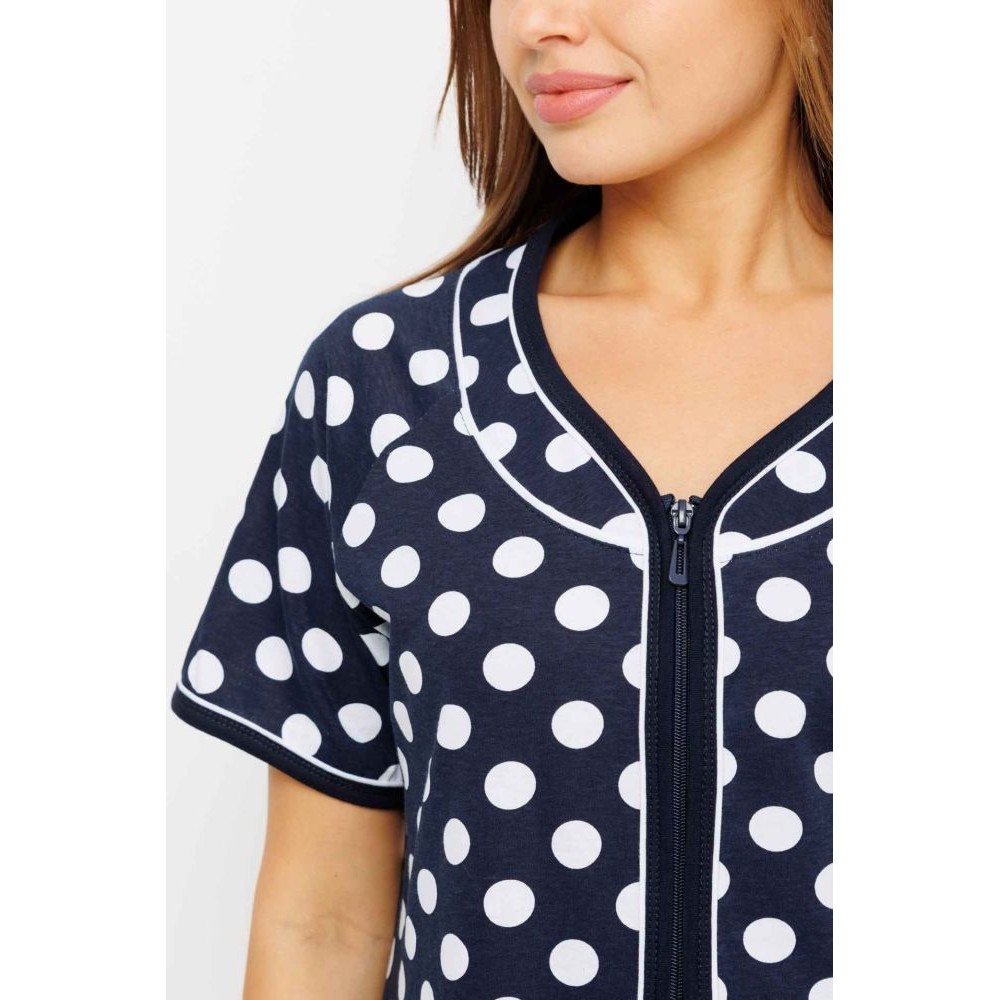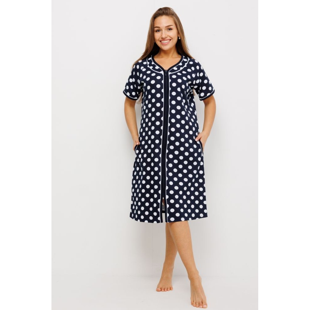 Халат женский из кулирки на молнии с коротким рукавом Темно-синий Kuzina
