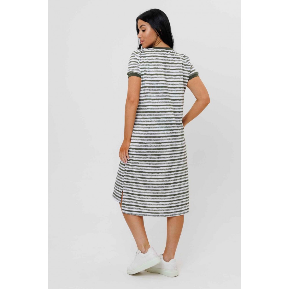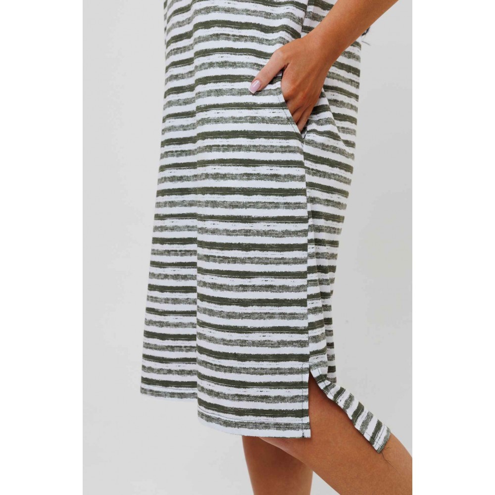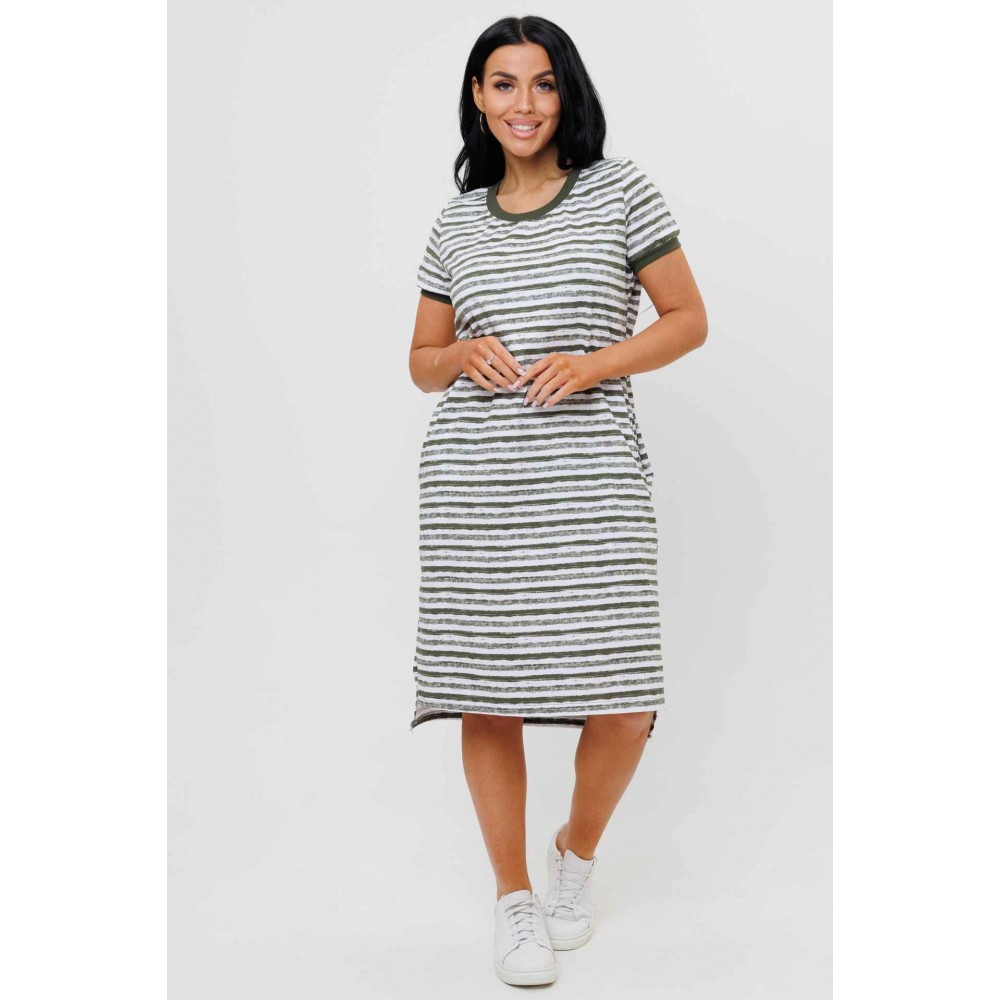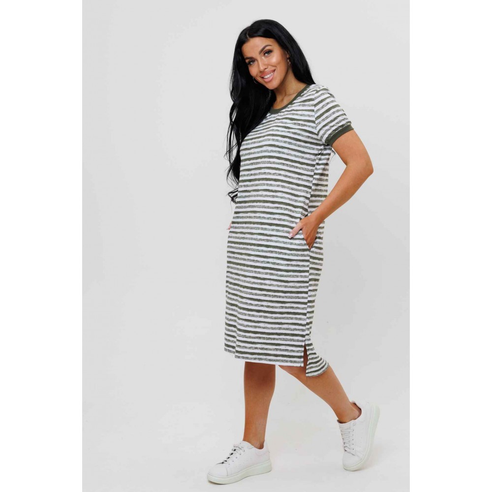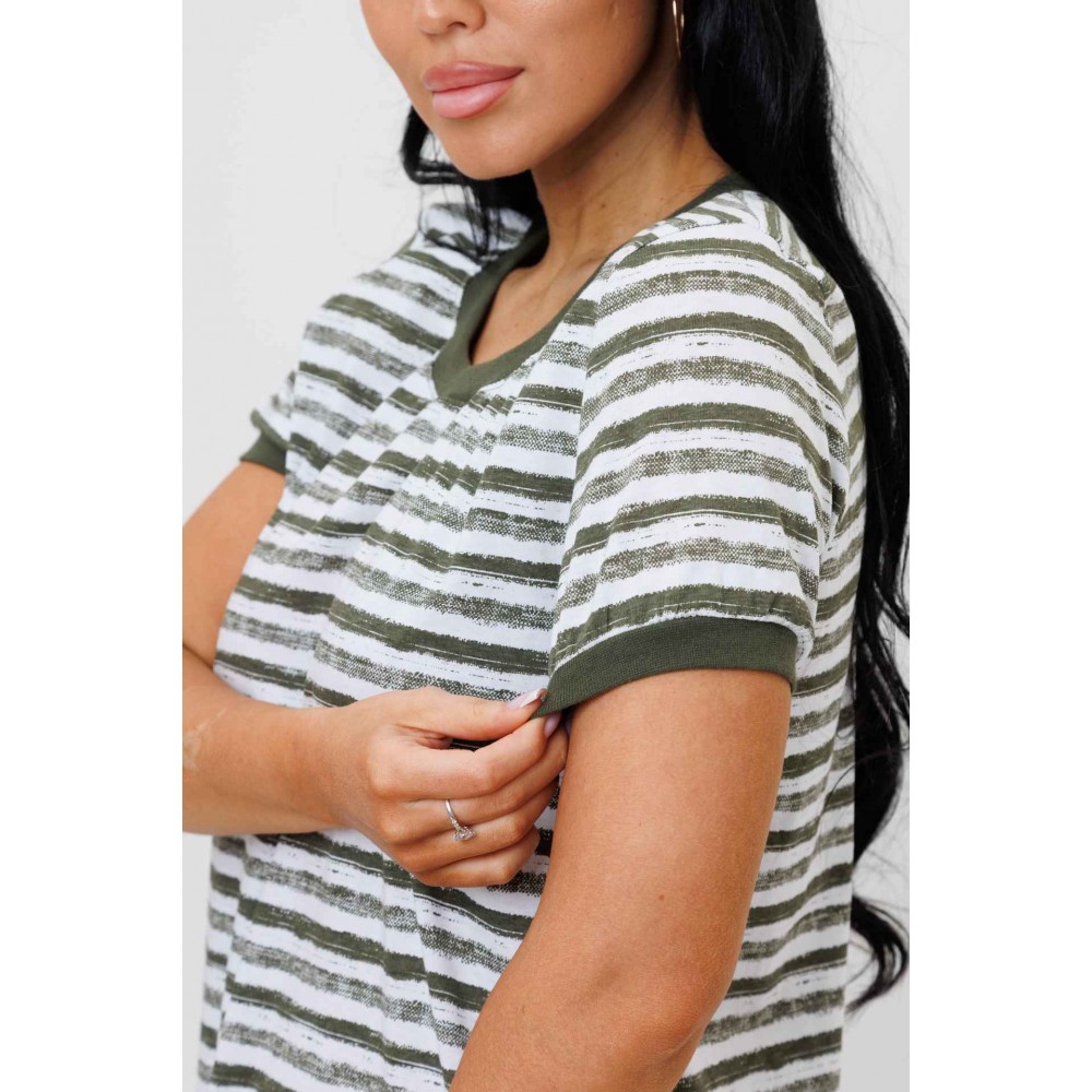 Туника женская из кулирки с коротким рукавом Бежевый, хаки Полоска Kuzina