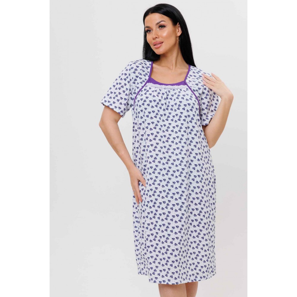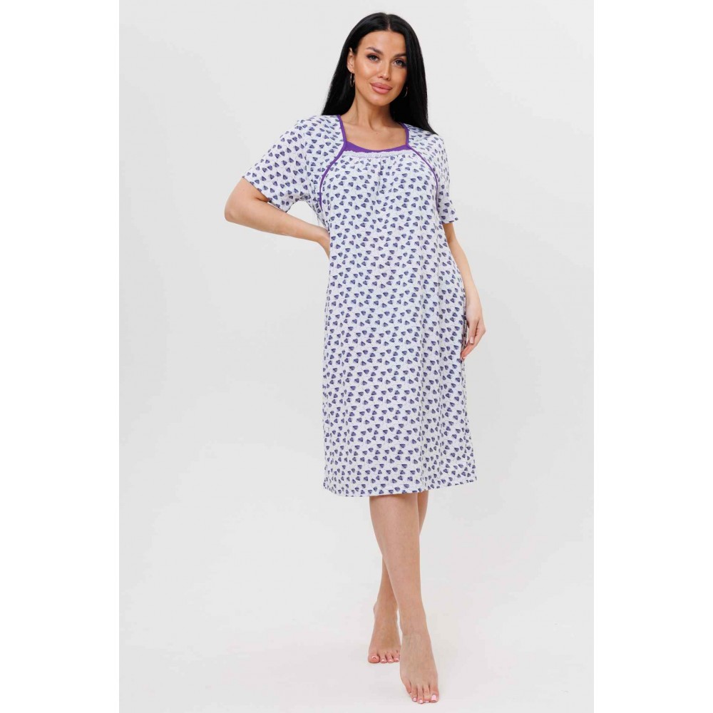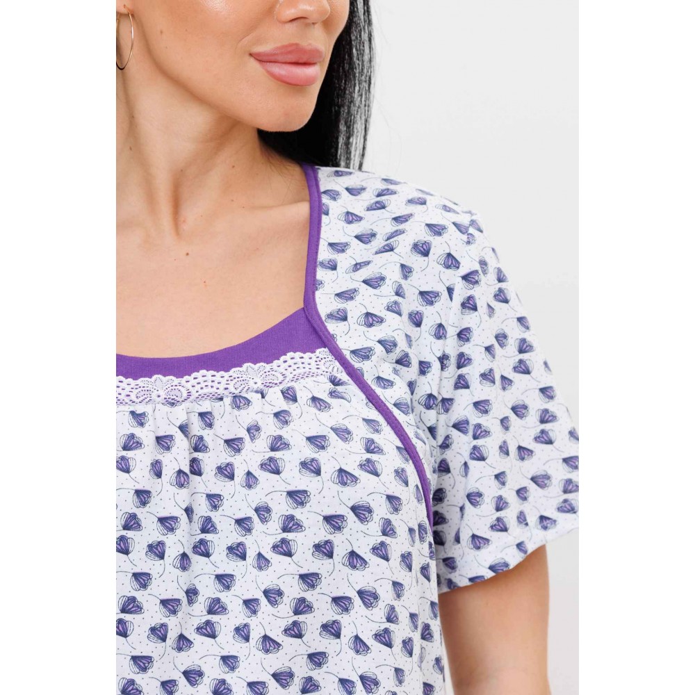 Сорочка женская из кулирки с коротким рукавом Белый, Фиолетовый Растения Kuzina