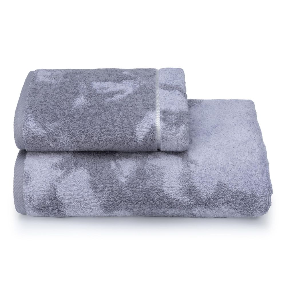 В полотенце Le montagne рисунок камня связан с нежной фактурой хлопка и его природным теплом. Такой союз подчеркивает лучшие качества материалов. Дизайн выполнен с помощью сочетания оттенков серого и плетения из серебристого полиэфира. Этот эффект разделяет полотенце на части с цветовой инверсией.