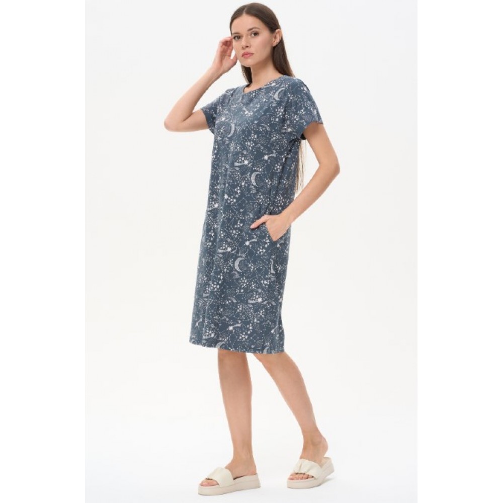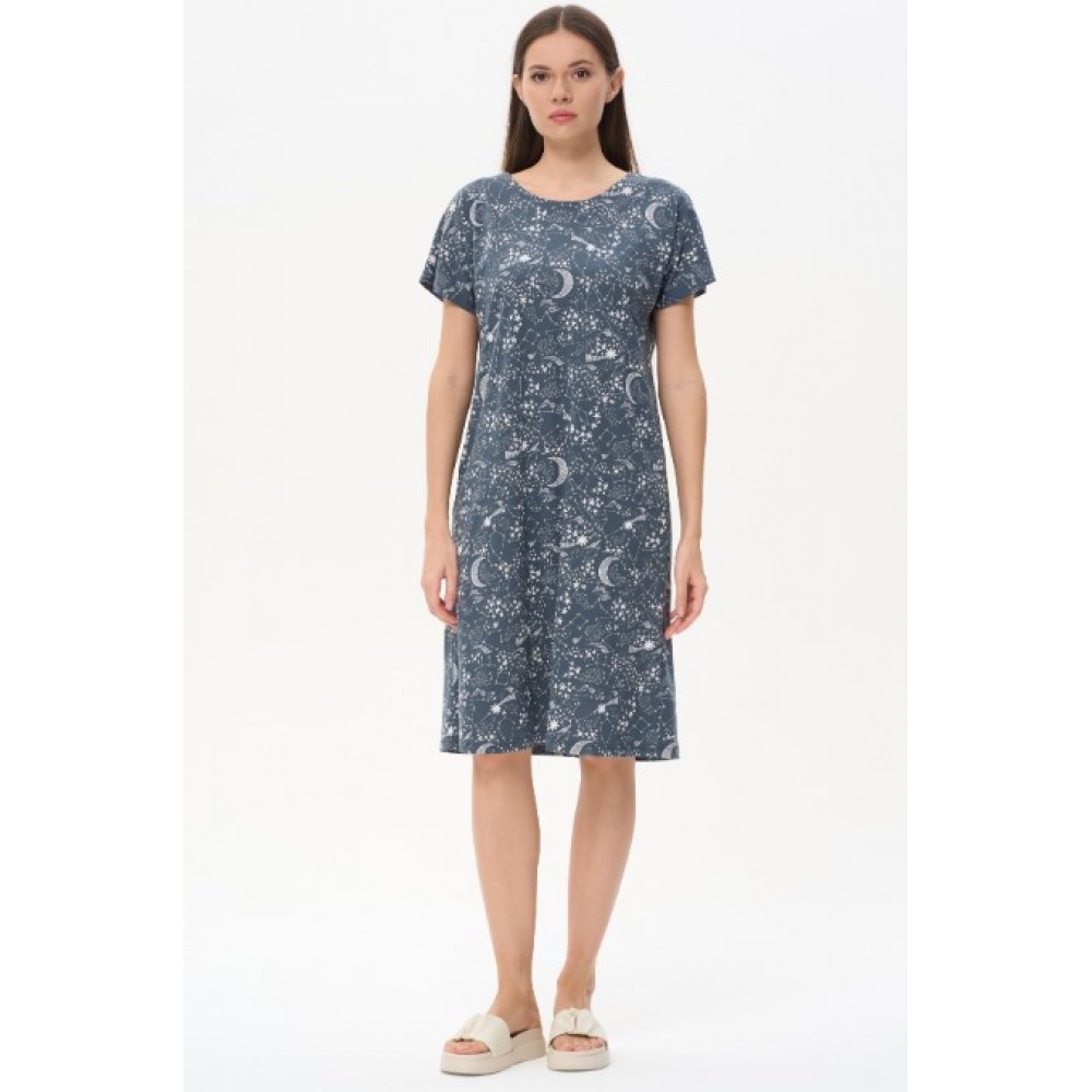 Платье женское трикотажное с коротким рукавом синее Абстракция