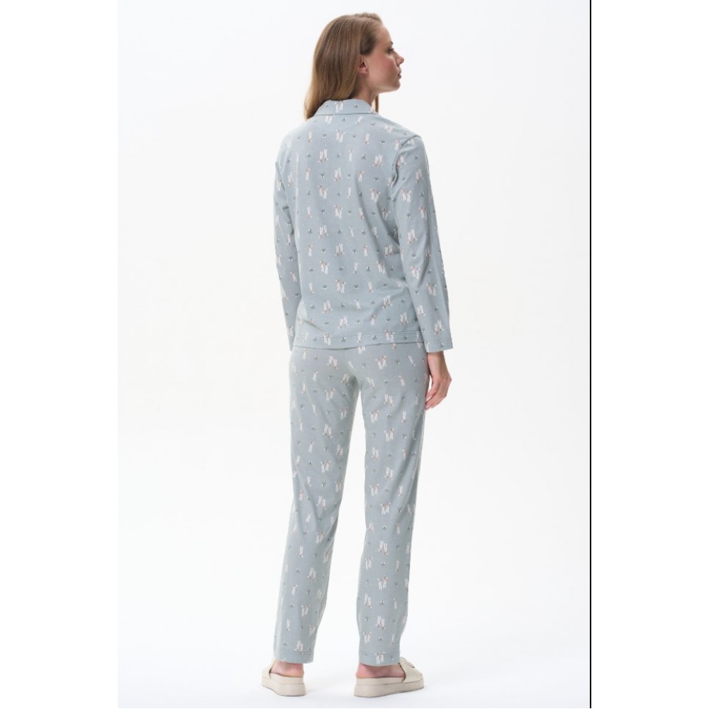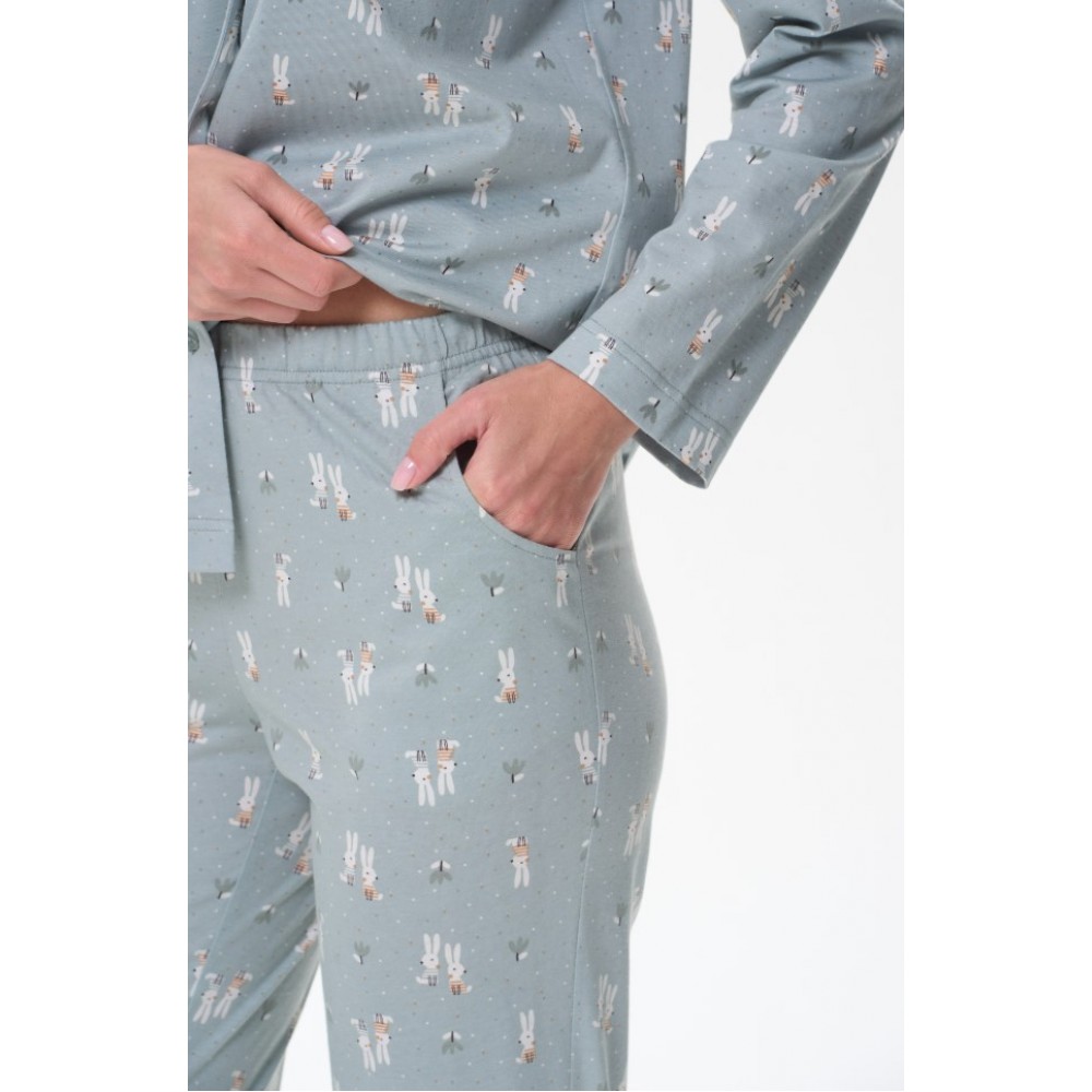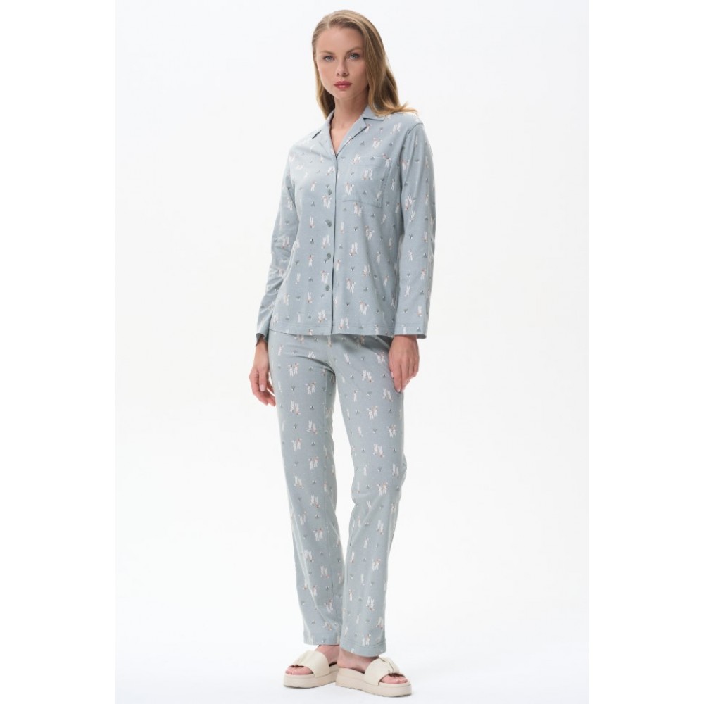 Пижама женская трикотажная на пуговицах рубашка с брюками зеленая