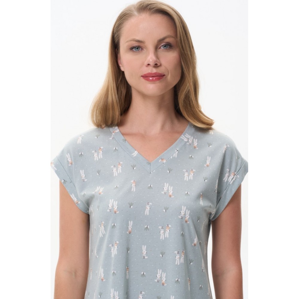 Сорочка женская трикотажная с коротким рукавом зеленая