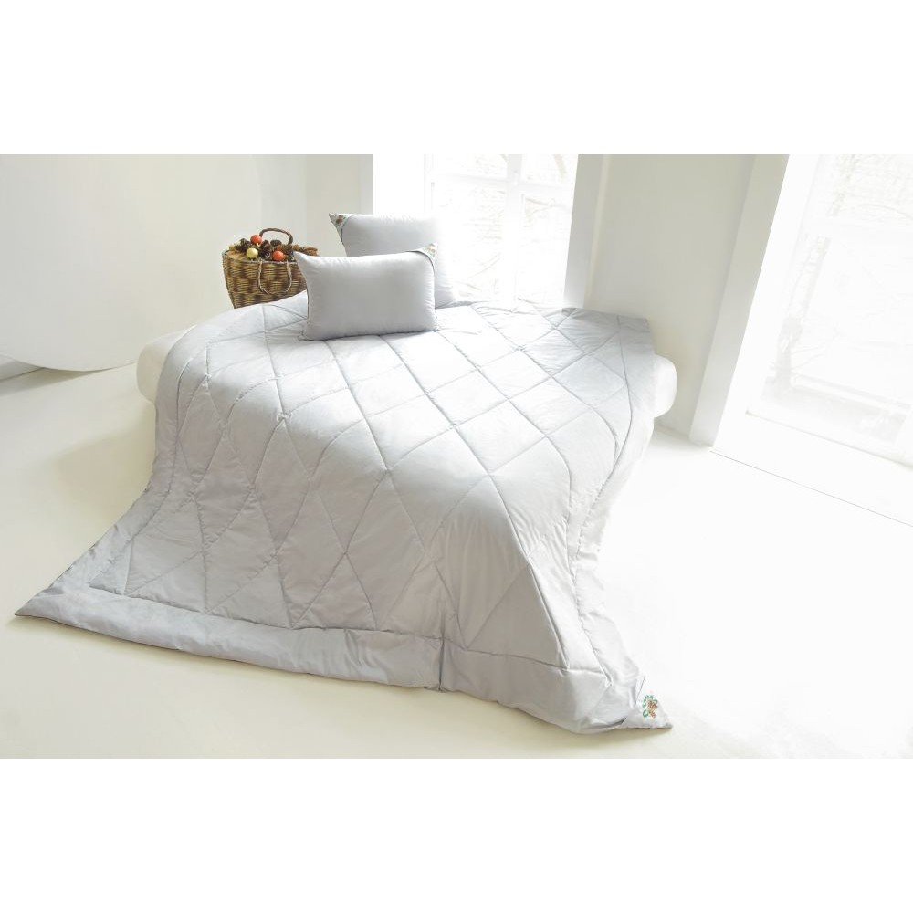Всесезонное одеяло коллекции «Кедровая Сила»   выполнено из хлопка  серебристо-серого цвета  очень плотного плетения, внутри — антибактериальное бамбуковое волокно. Дизайн одеяла украшает кармашек с оригинальной вышивкой, а также в комплект изделия входит саше — мешочек из натуральной льняной ткани, наполненный пленкой ядра кедрового ореха. Не вызывает аллергии.