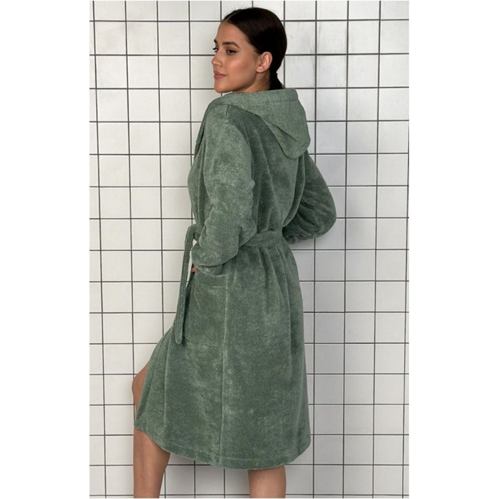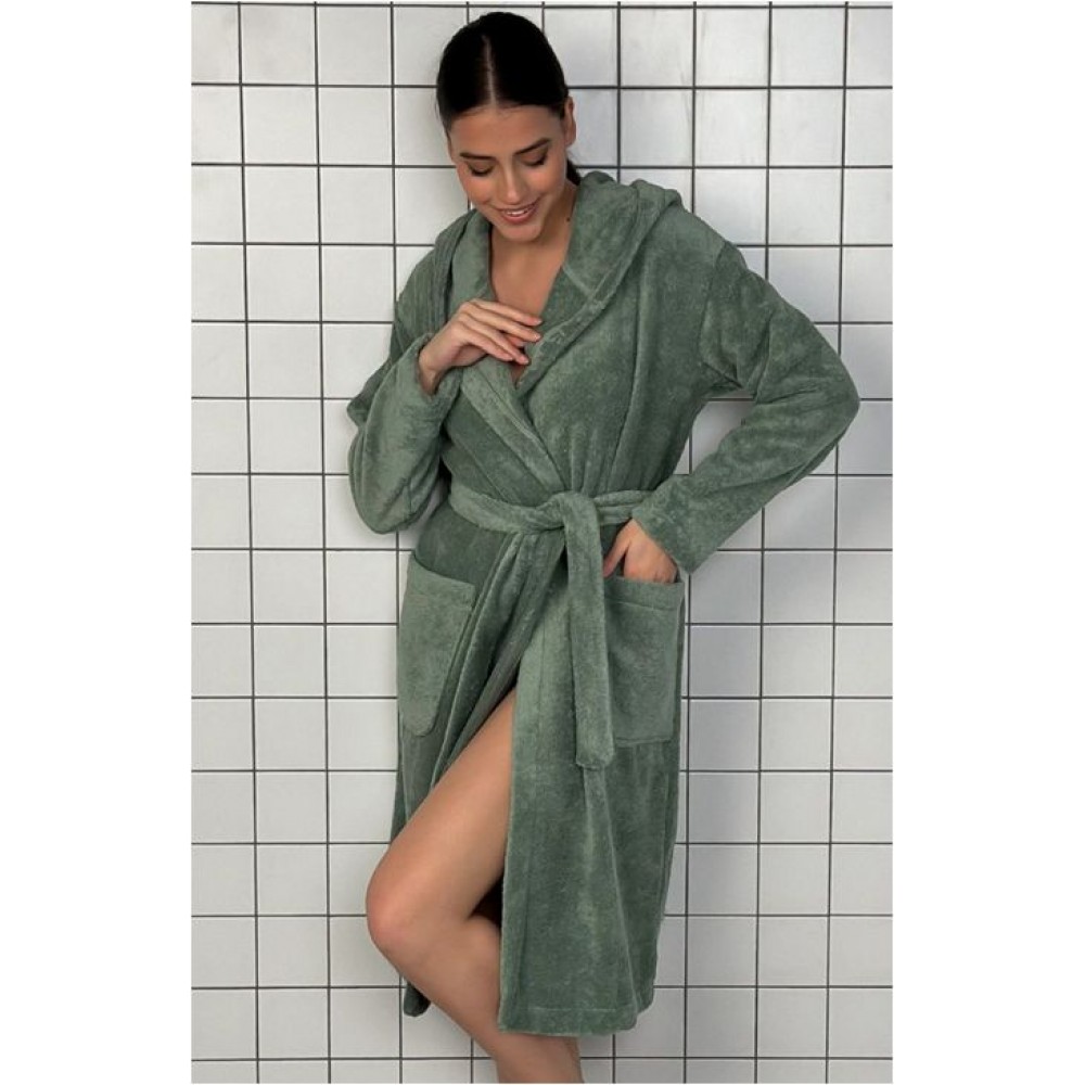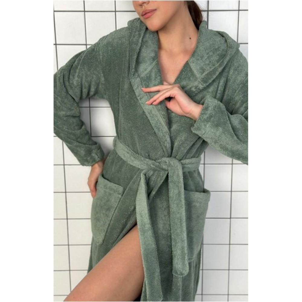 Халат женский махровый с запахом с длинным рукавом зеленый