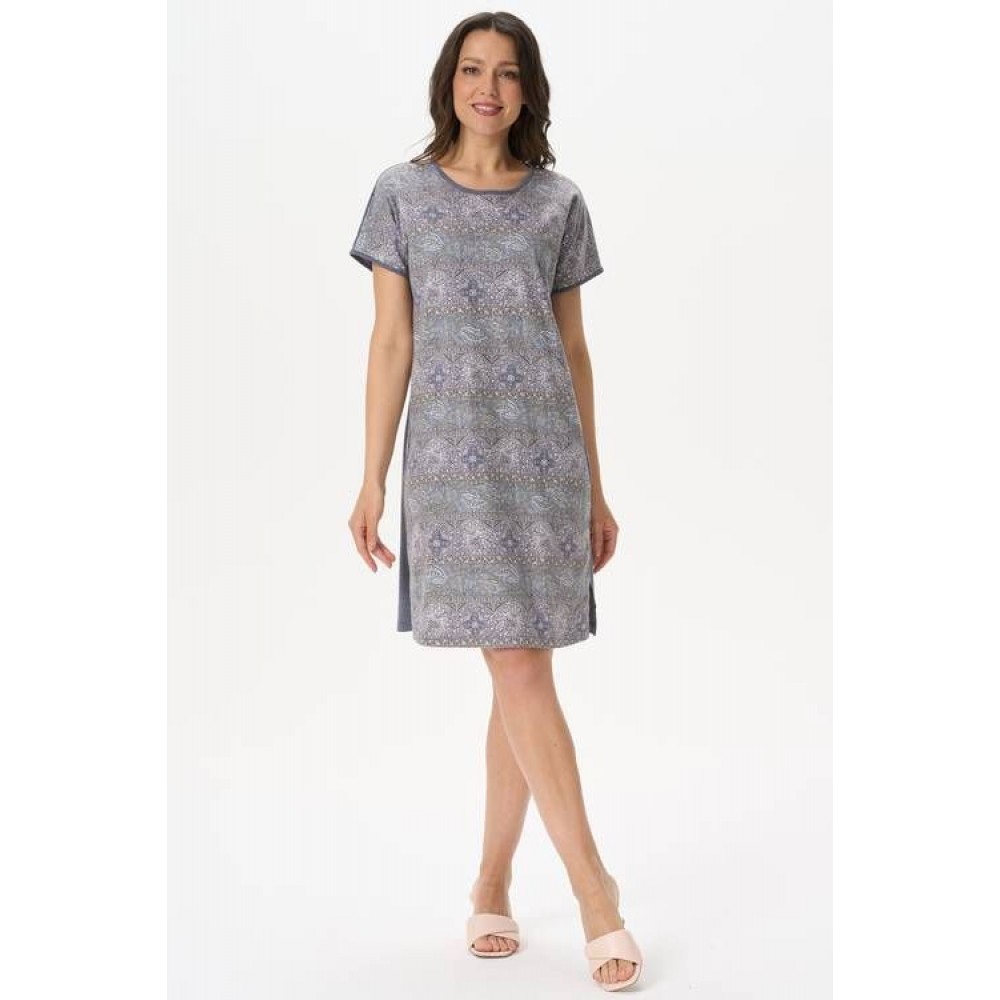 Платье женское трикотажное с коротким рукавом серое Орнамент