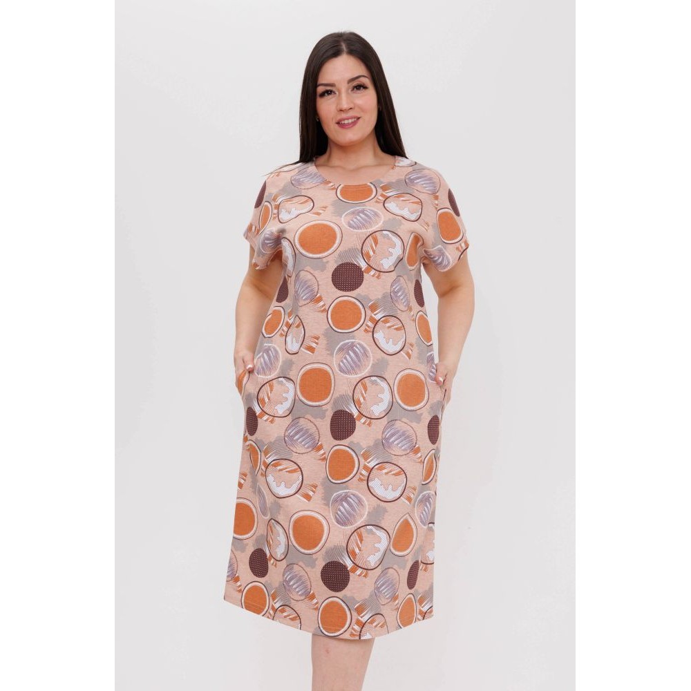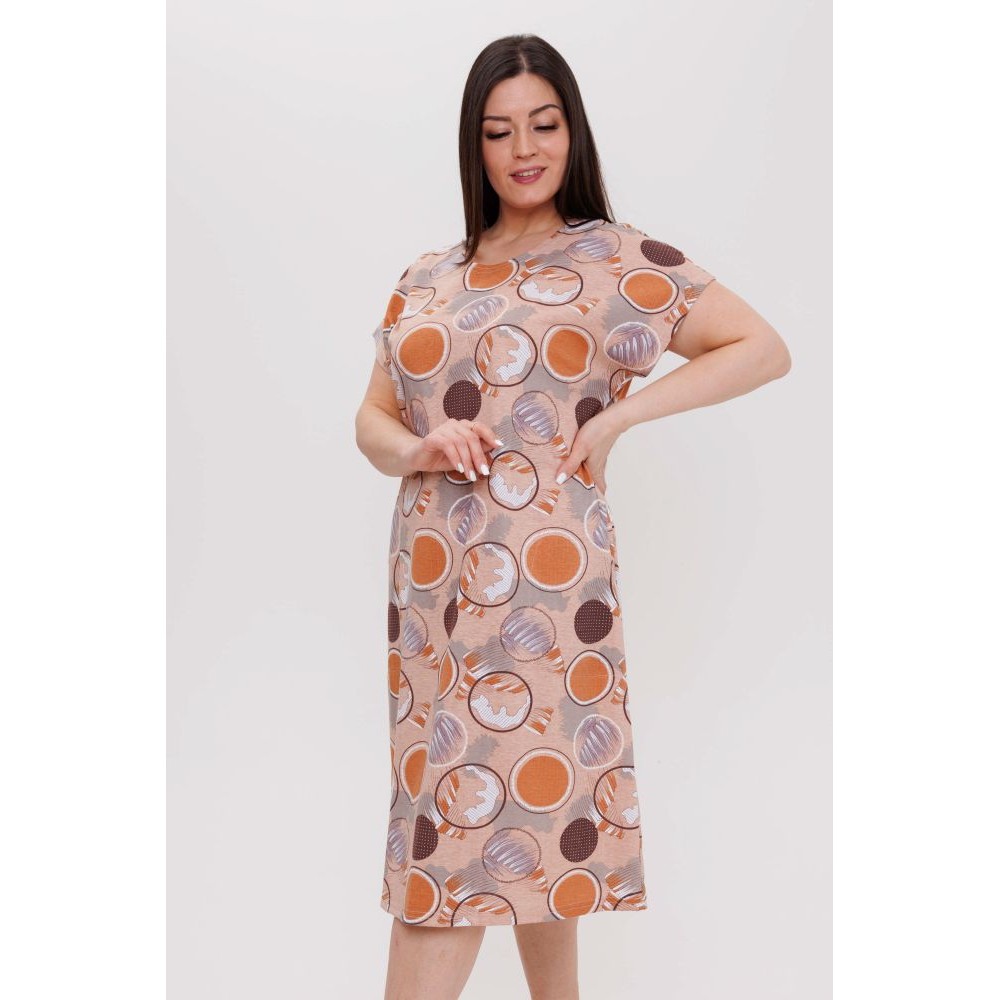 Туника женская из кулирки с коротким рукавом оранжевая Круги