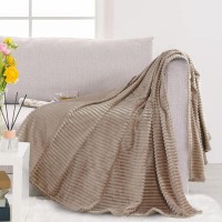 Плед универсальный 180х200 двуспальный из велсофта 280 г/м2 бежевый Полоска