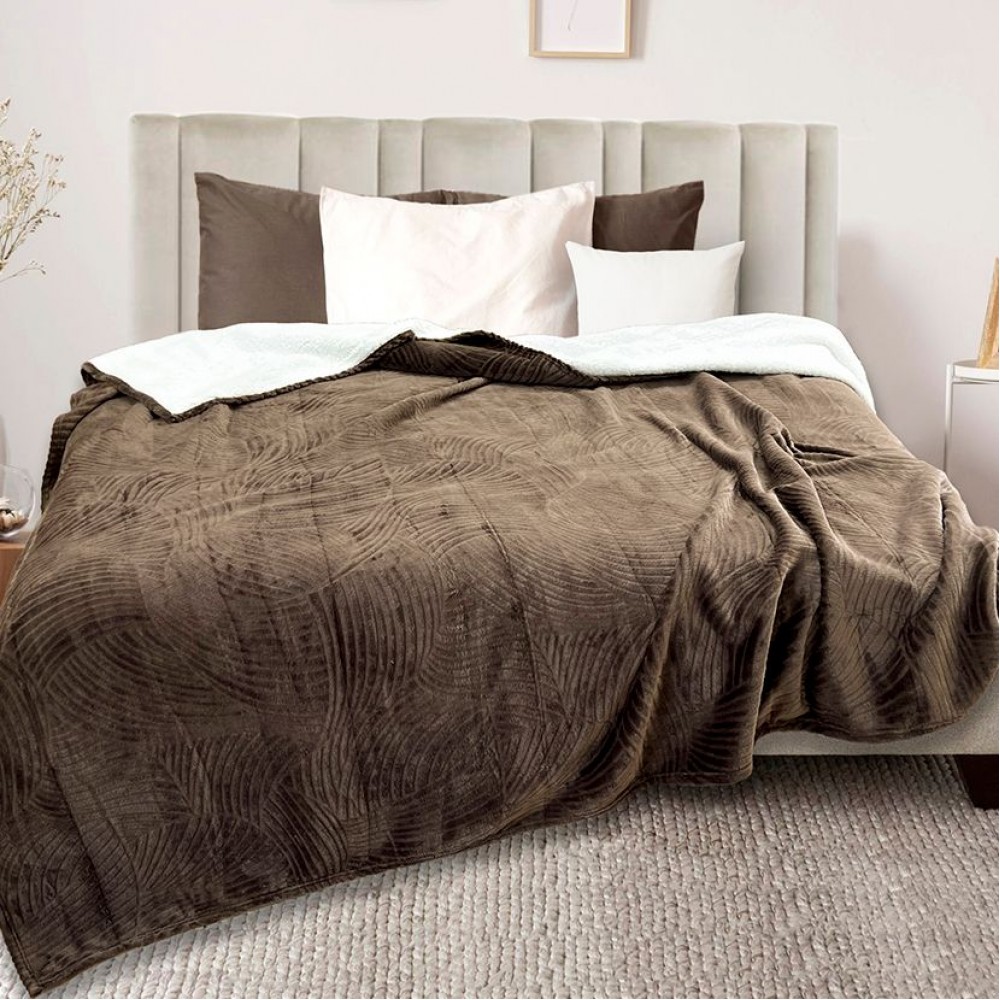 Плед универсальный 200х220 евро из велсофта 350 г/м2 коричневый Узор ФаВИ-МОДА