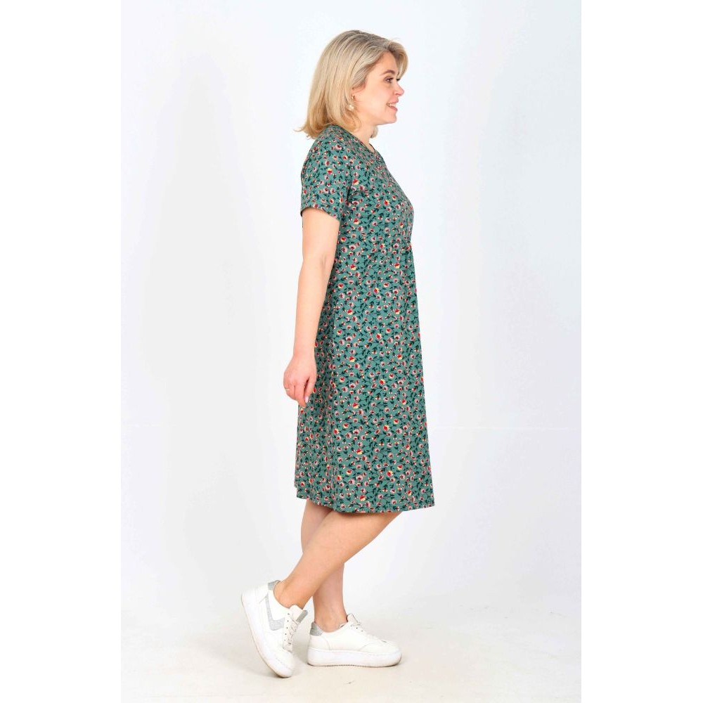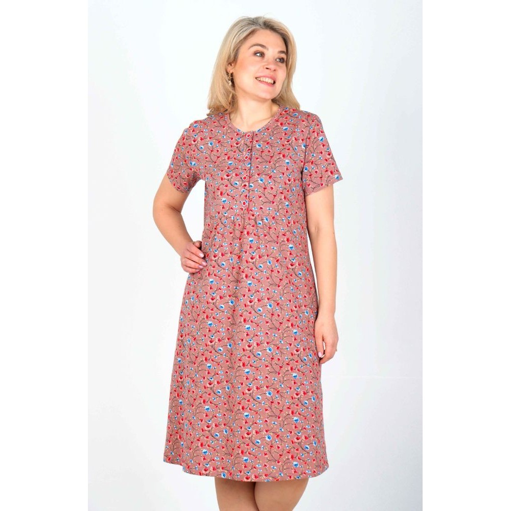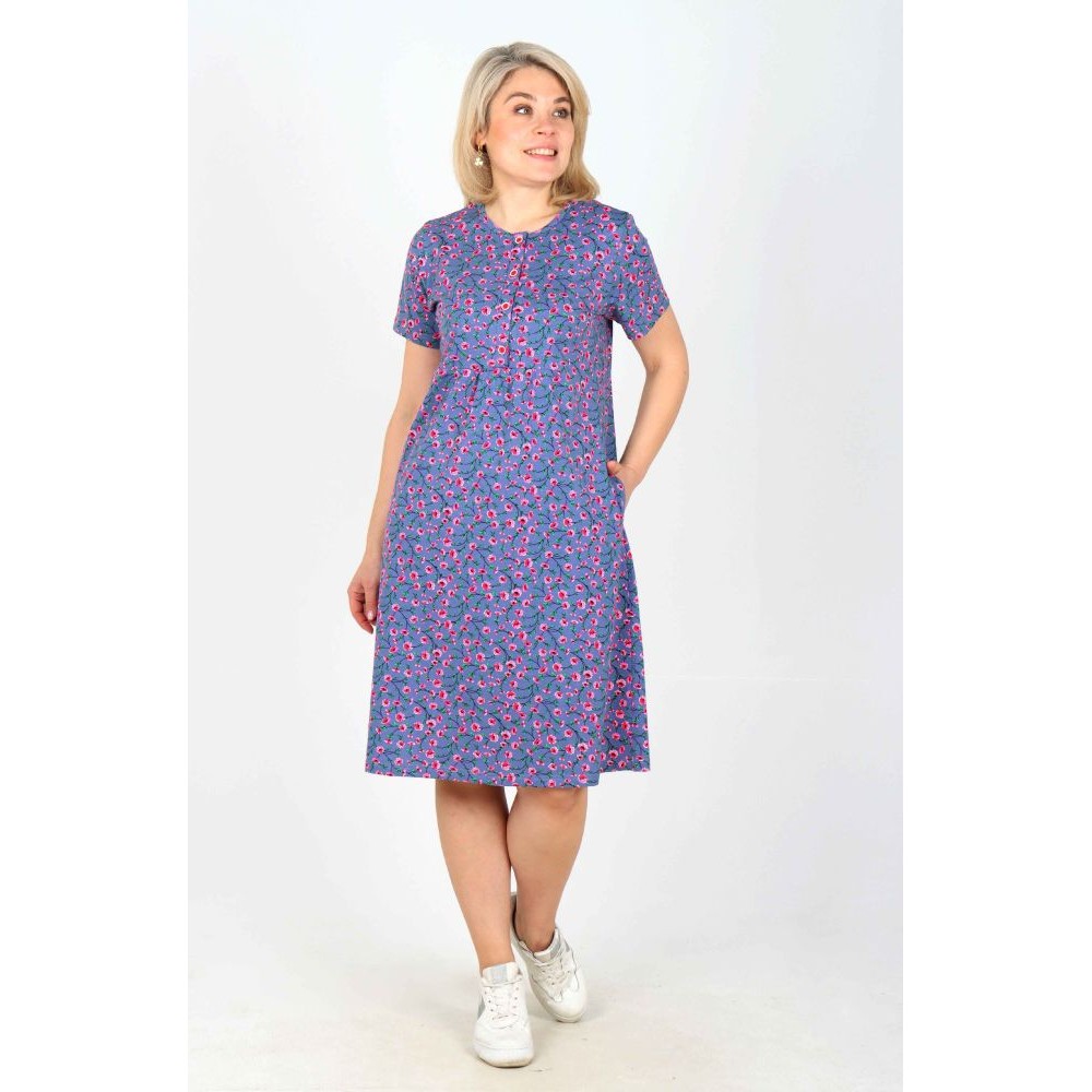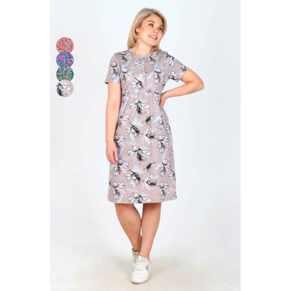 Платье женское из кулирки на пуговицах с коротким рукавом в ассортименте Цветы