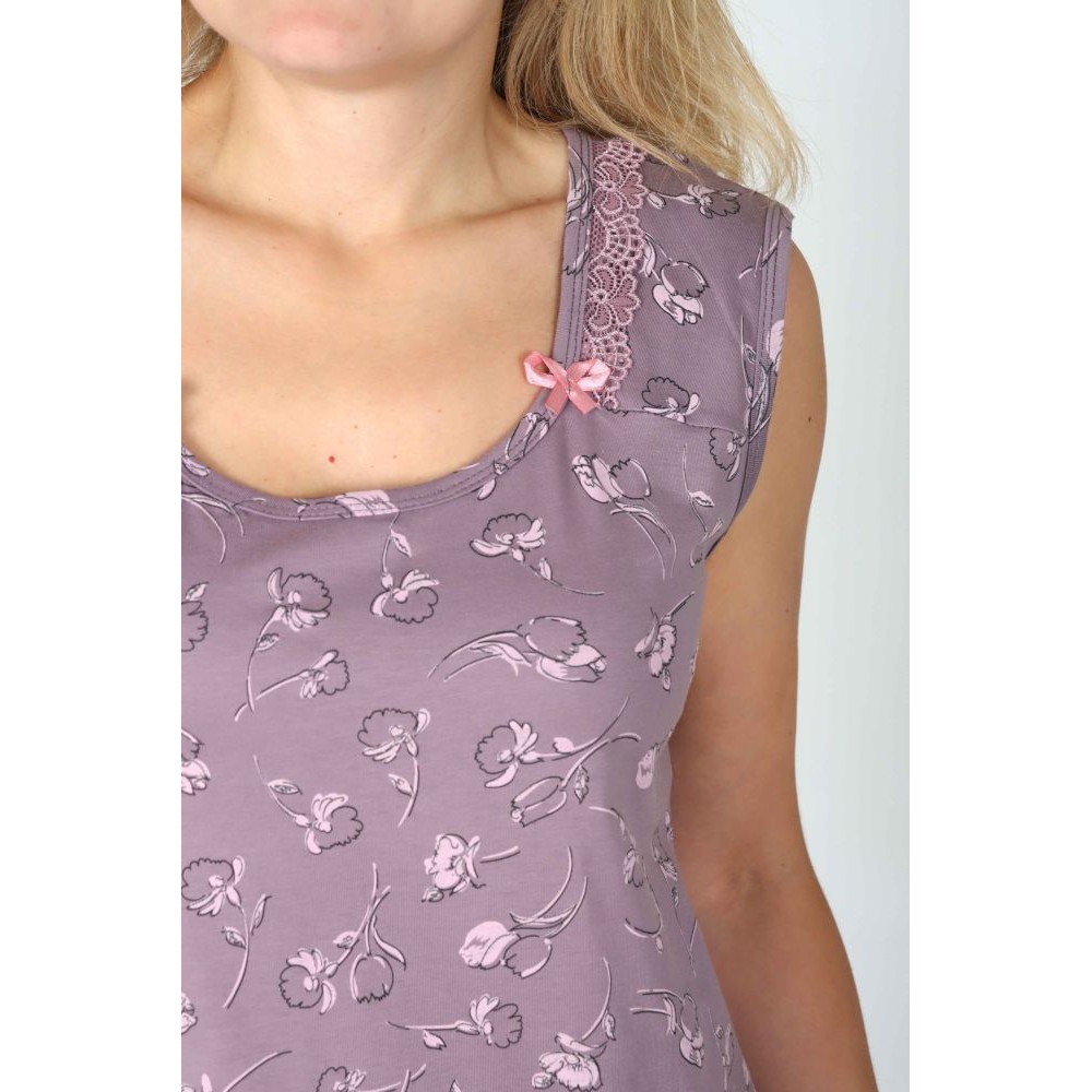 Нежная хлопковая сорочка свободного покроя, украшенная кружевом и двумя небольшими бантами. Подойдет для женщин любого возраста и телосложения. Состав: хлопок 100%