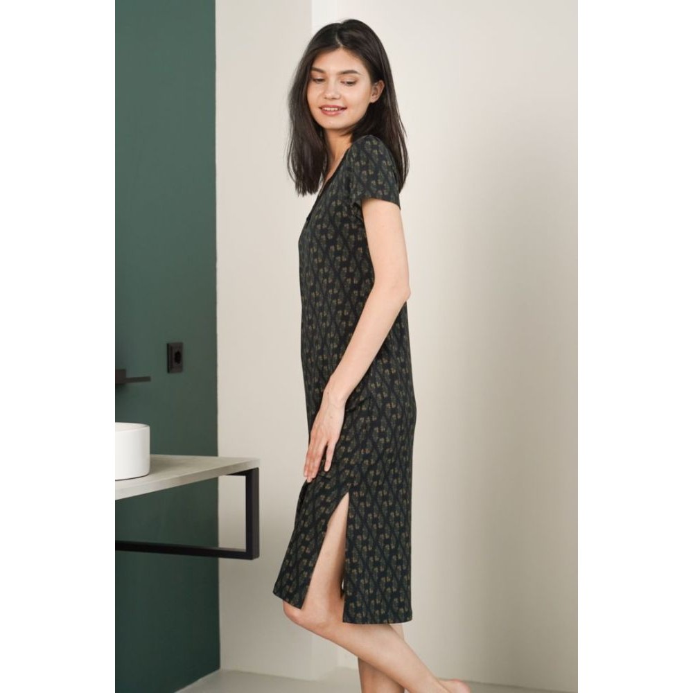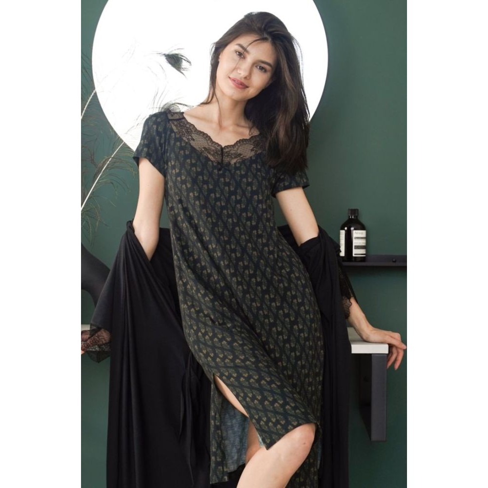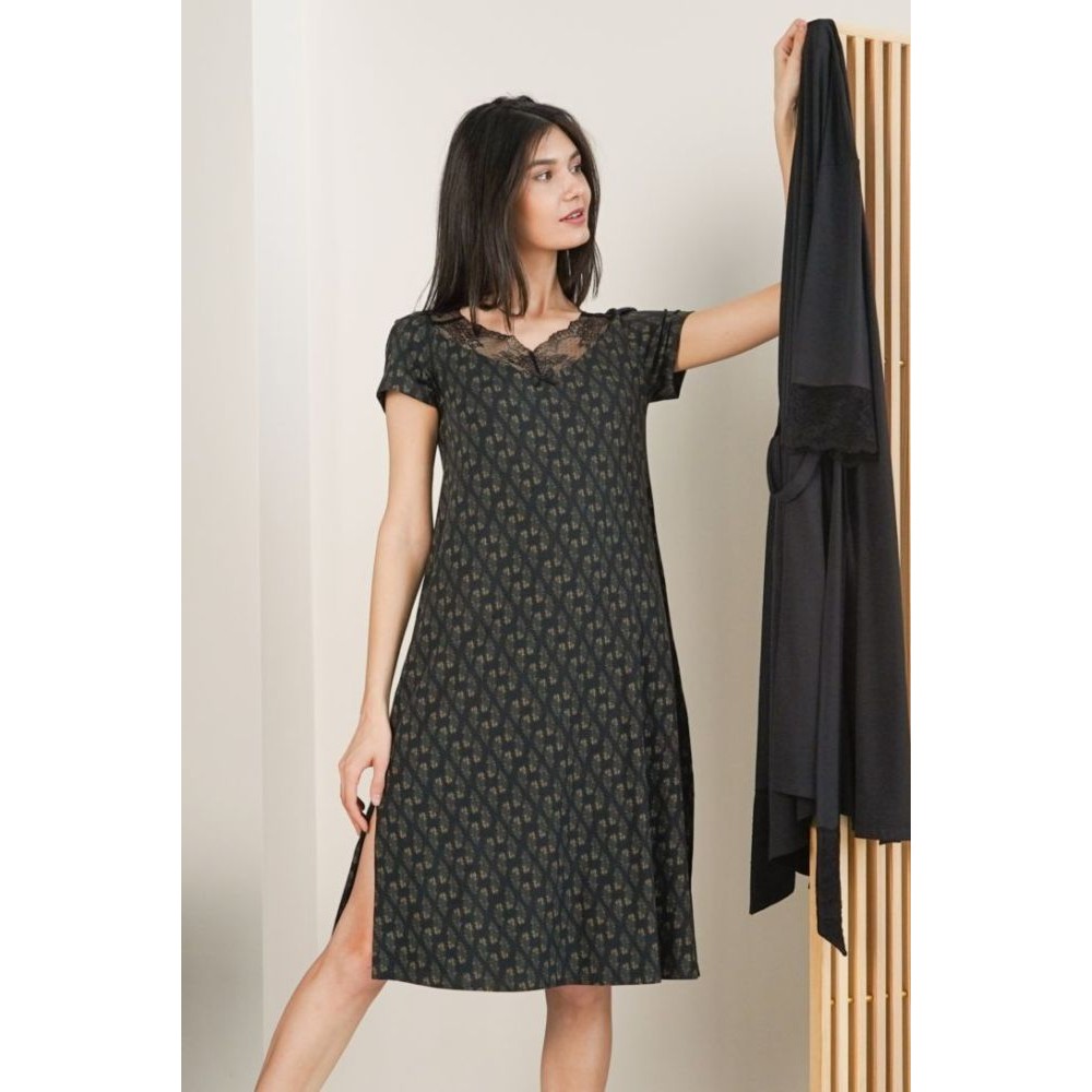 Классическая сорочка свободного прилегания с короткими рукавами с разрезами в боковом шве. Лиф сорочки декорирован кружевом. Состав: Хлопок 47%, Модал 47%, Эластан 6%