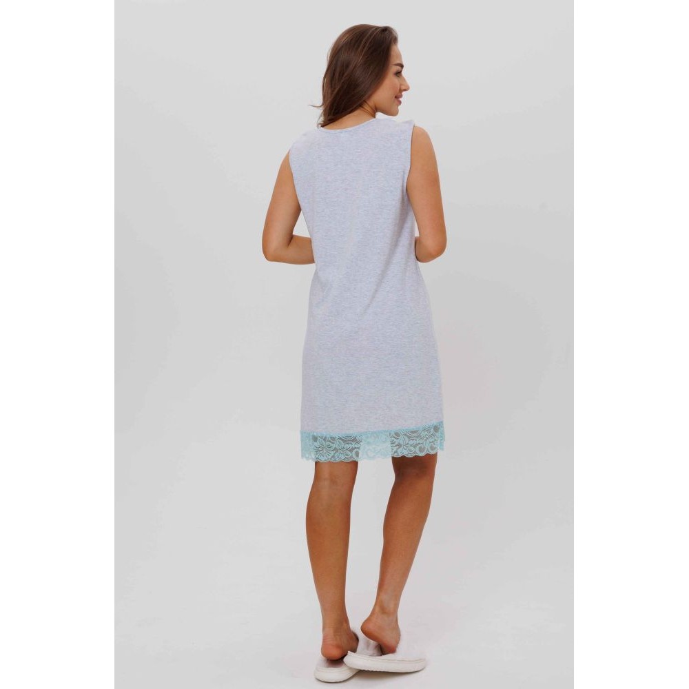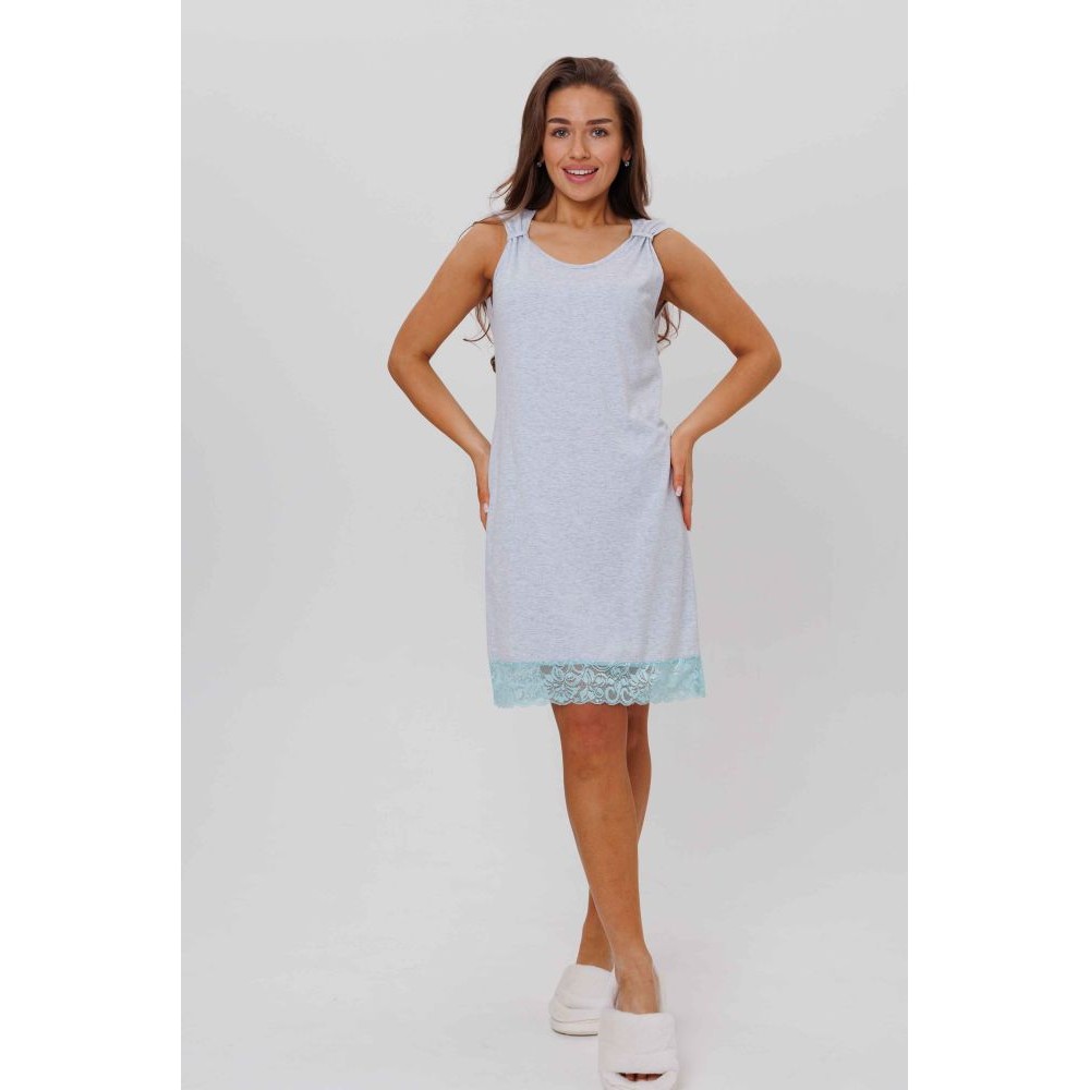 Ночная сорочка из кулирки на фигурных бретелях. Длина до колена, низ сорочки отделан кружевом.